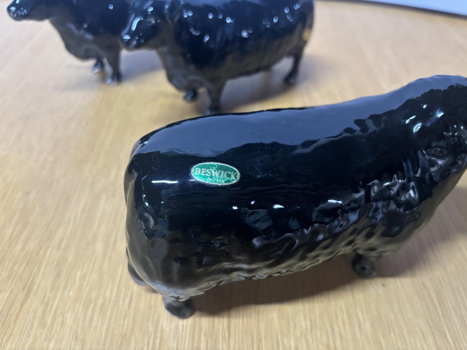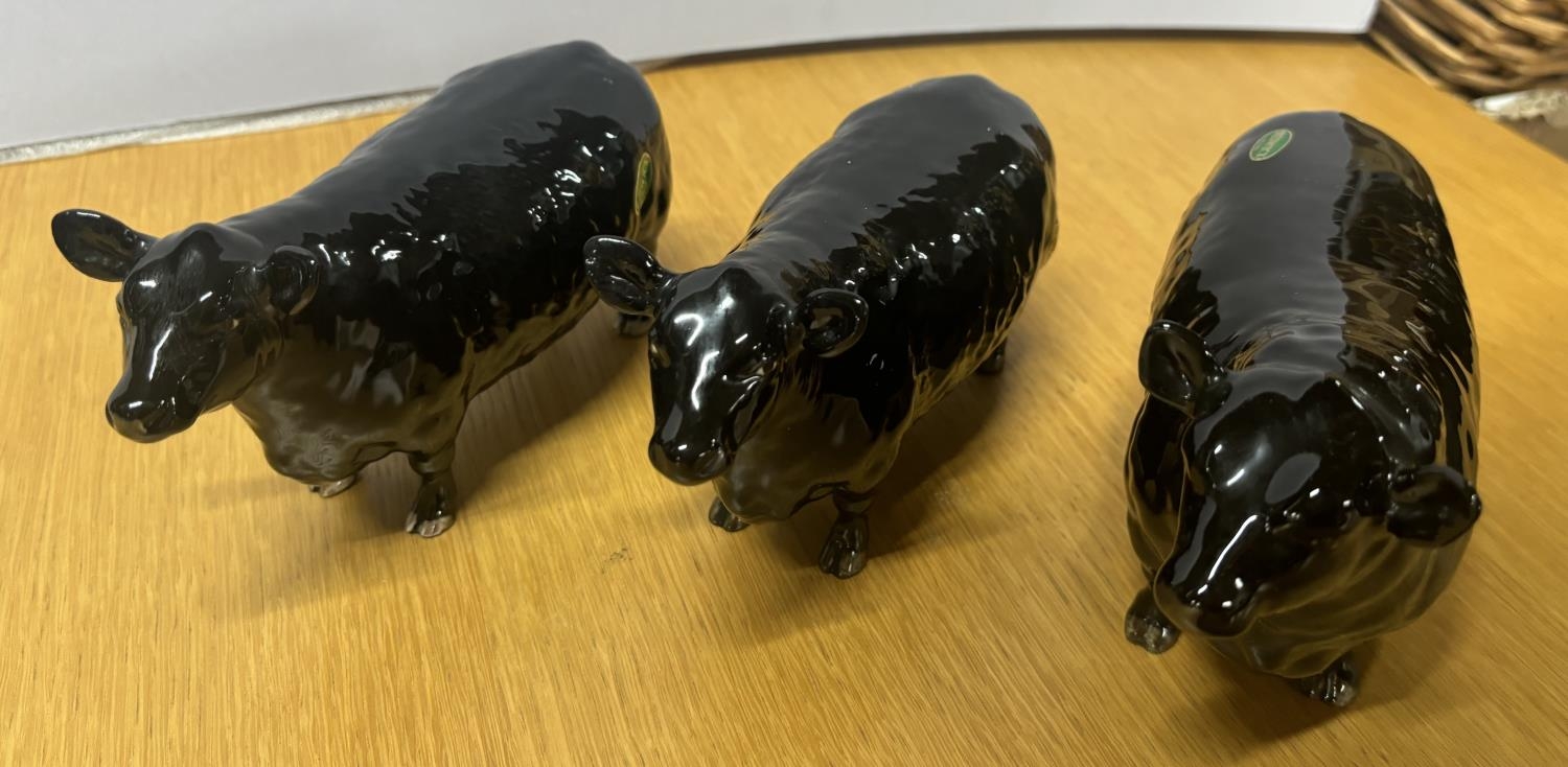 Beswick Aberdeen Angus Bull together with 2 Beswick Aberdeen Angus Cows (3), All in gloss
