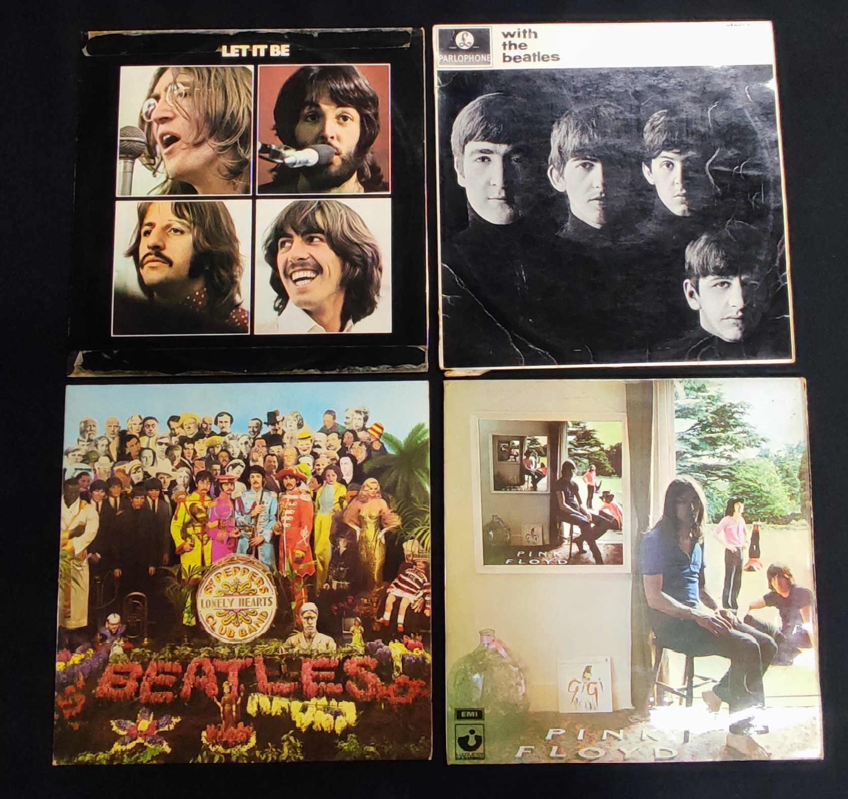 Four LP’s, three The Beatles LP’s – “With The Beatles”, “Let it Be” & Sgt. Peppers Lonely Hearts band” (with insert) together with one Pink Floyd LP – “Ummagumma” (4)