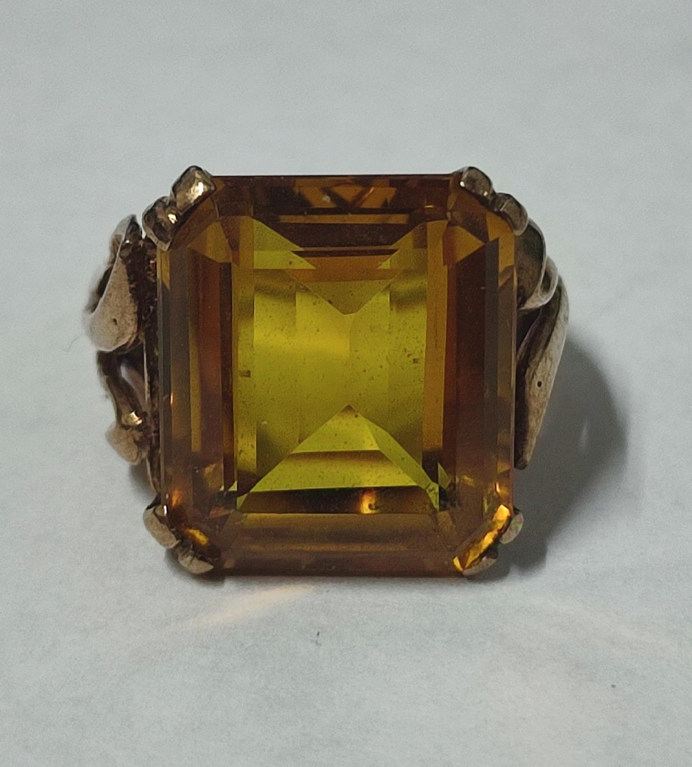 A 9ct. Yellow Gold & fine quality Citrine ring, 7.6 grams gross, size J