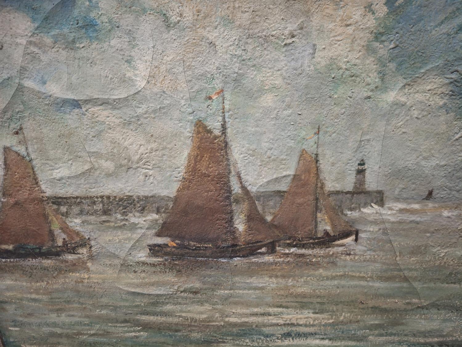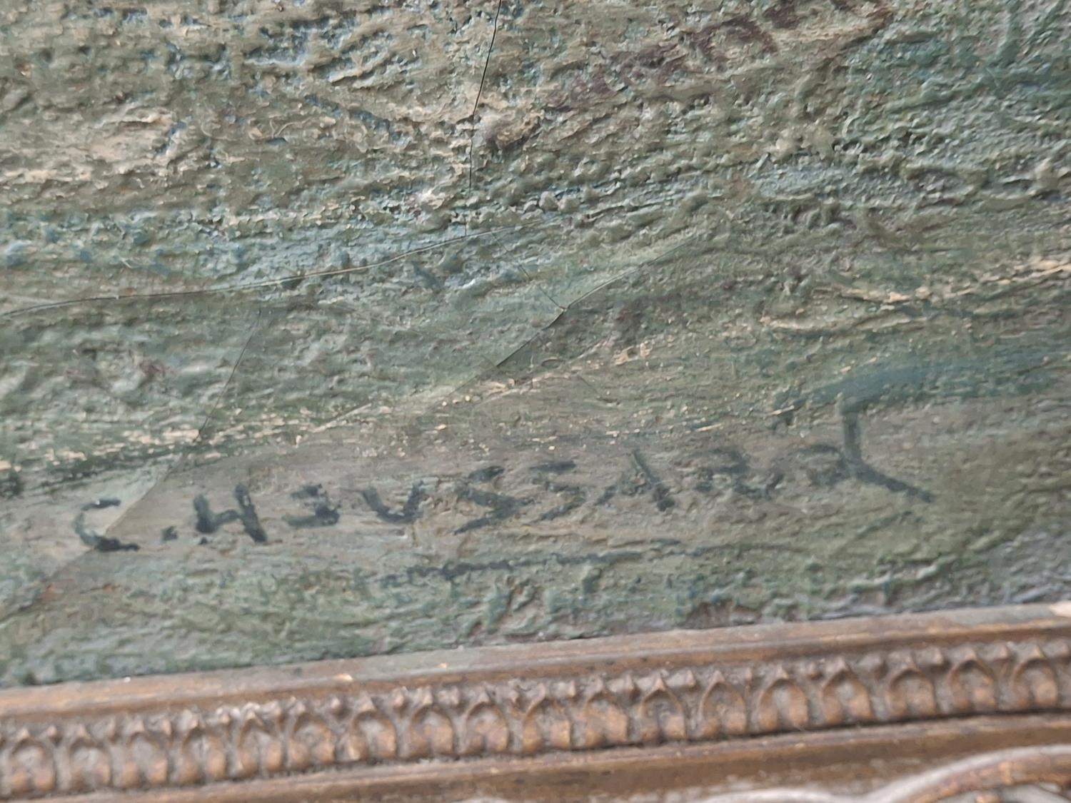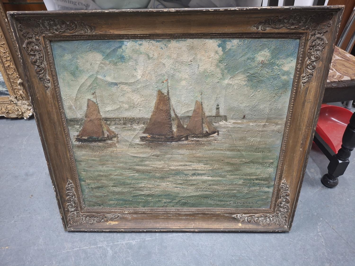 C Houssard signed, early/mid 20thC post-impressionist oil on canvas of fishing, The oil measures 54 x 63 cm