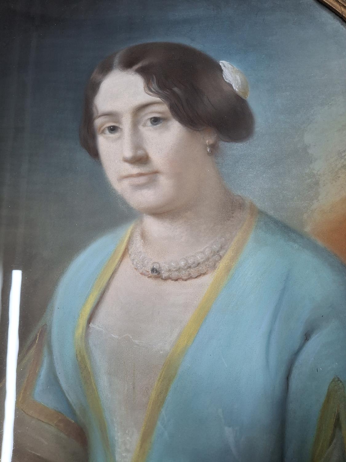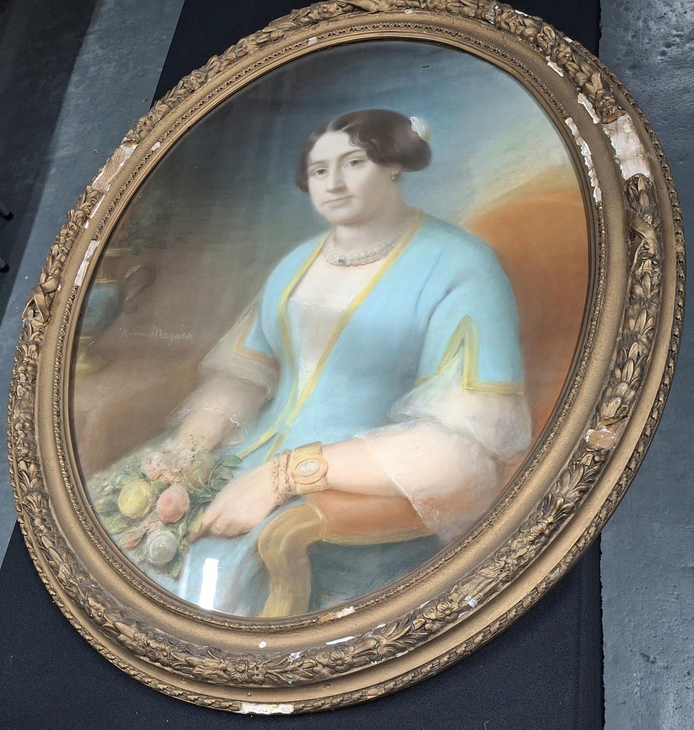 Isidore Jean Baptiste MAGUES (1809-1869) large oval pastel portrait of a young lady, believed to be the Arch Duchess of Austria in its original large gilt plaster oval frame,