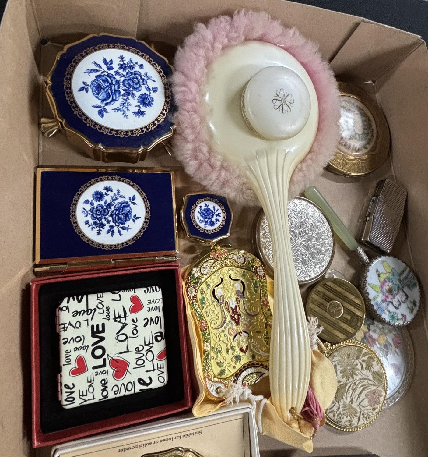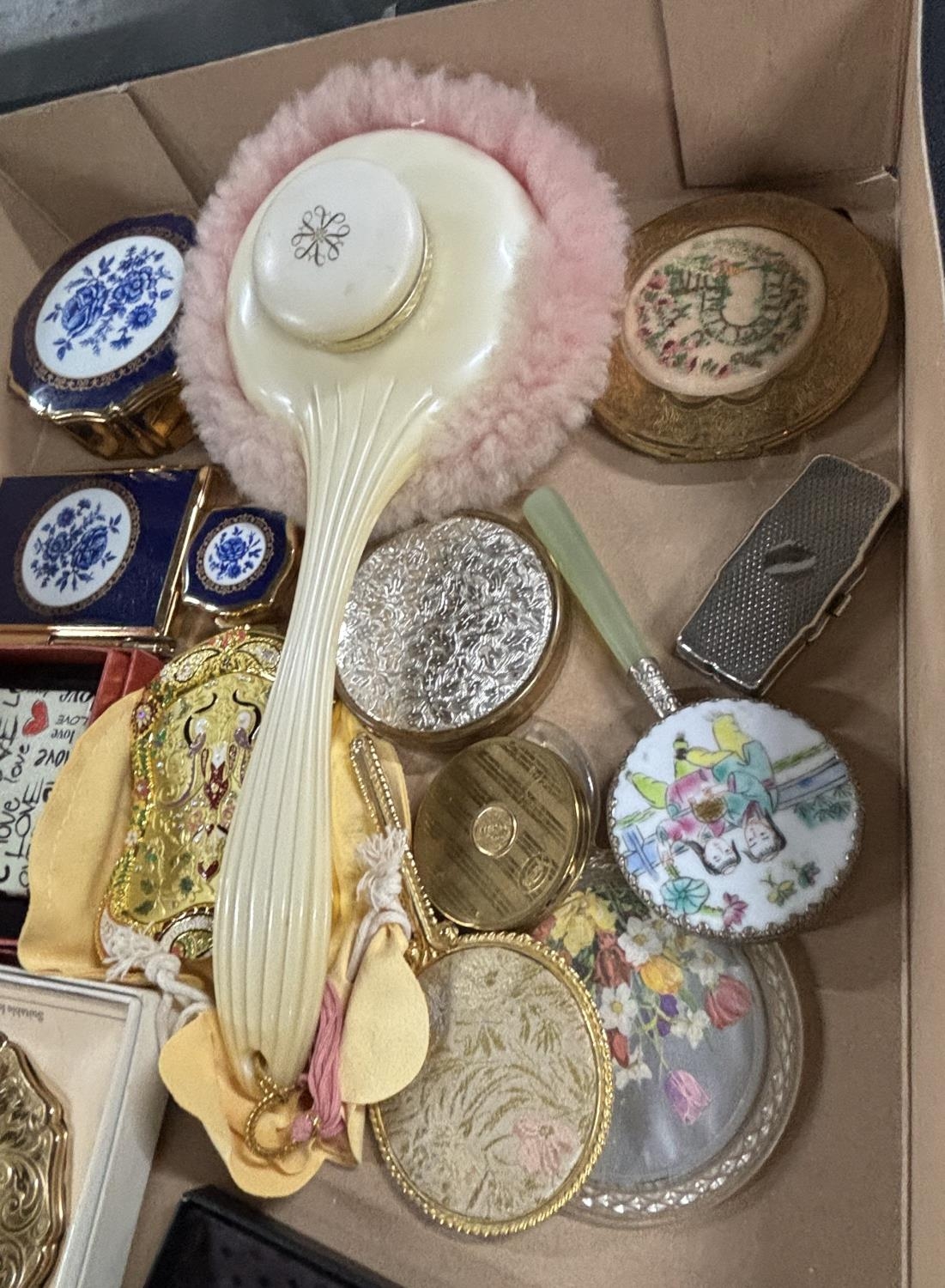 Selection of fifteen vintage compacts, small mirrors, Jade etc (15)