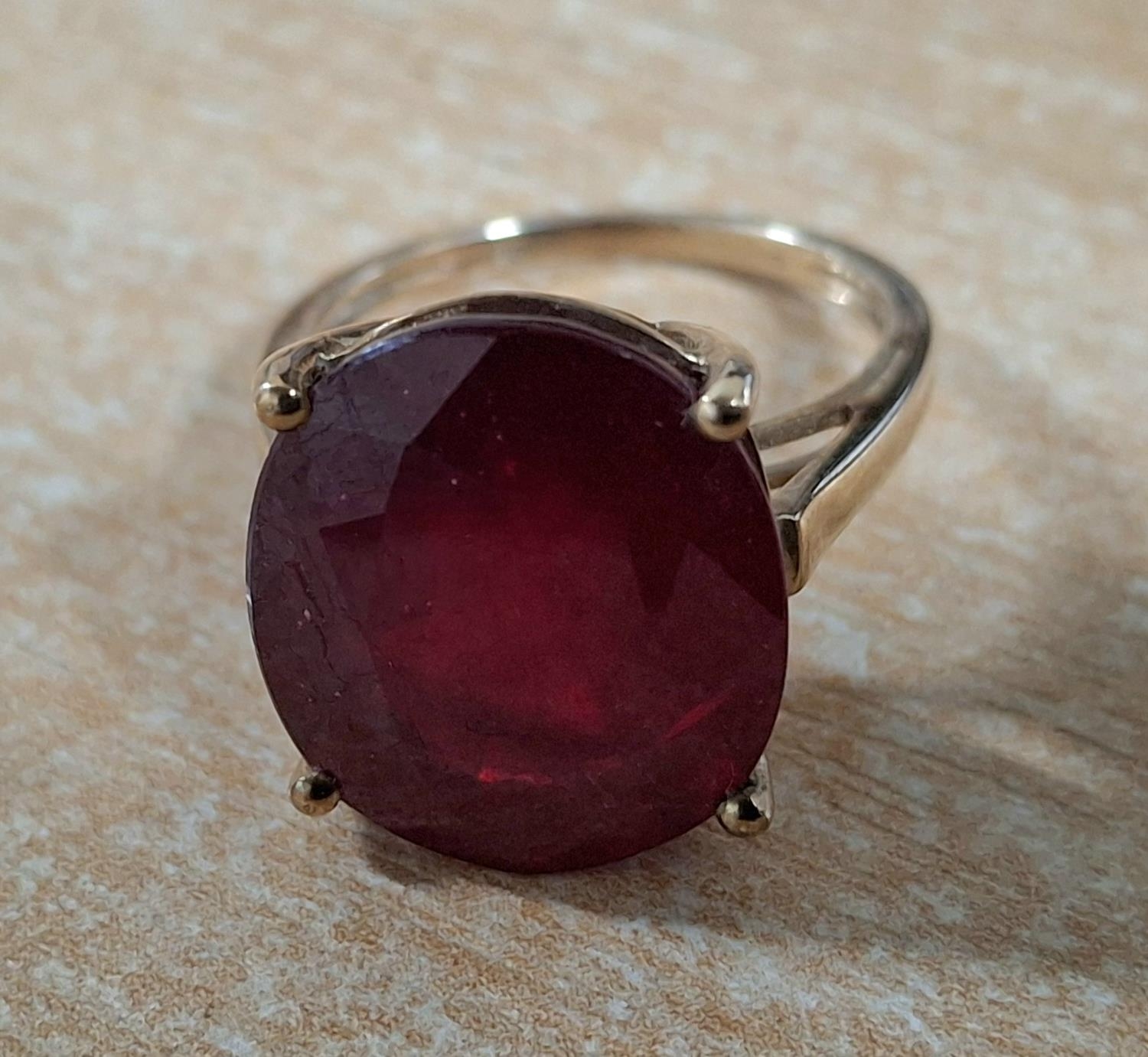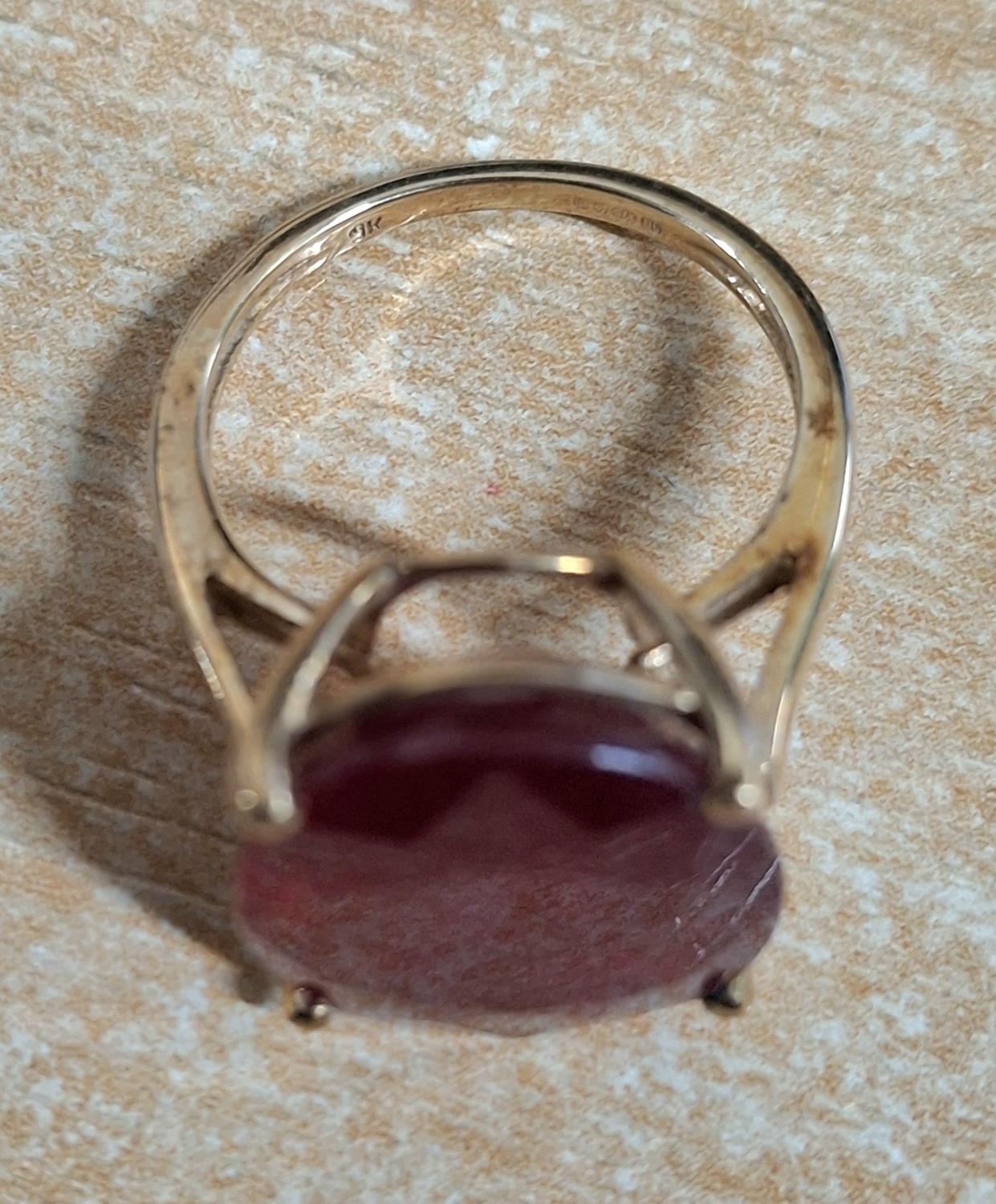 9ct yellow gold ring with large oval cut Ruby, 4.7 grams gross Size J/K
