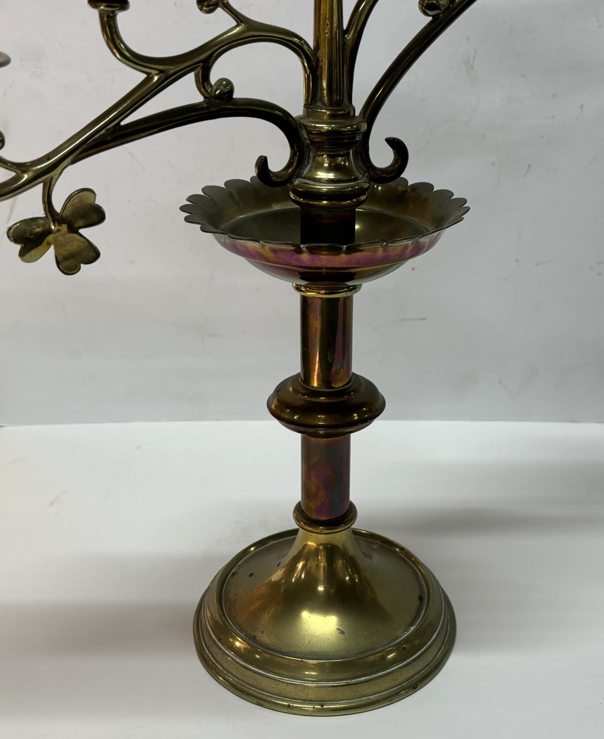 Pair of large 5-arm brass church candle holders
