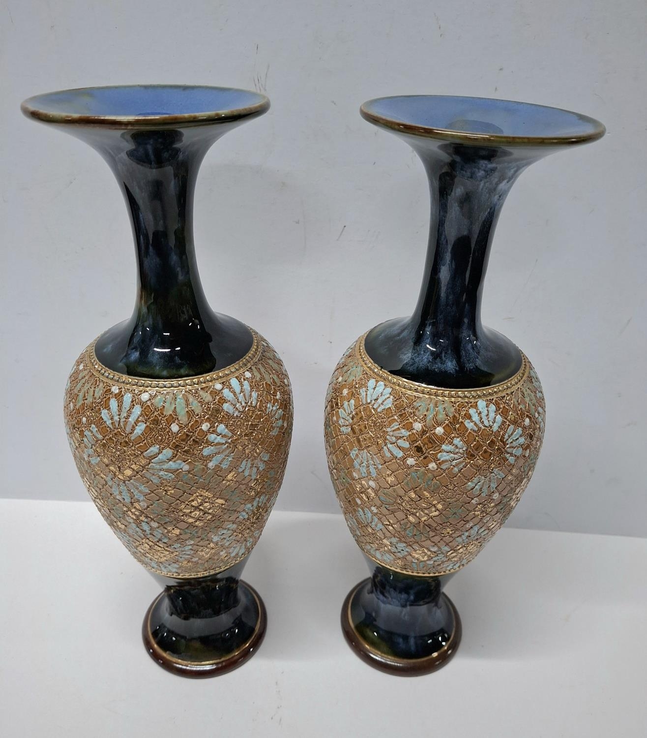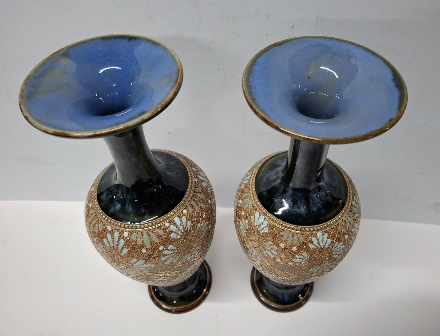 Pair of late 19thC Doulton Lambeth, Slaters patent stoneware vases (2), Both are 28cm tall