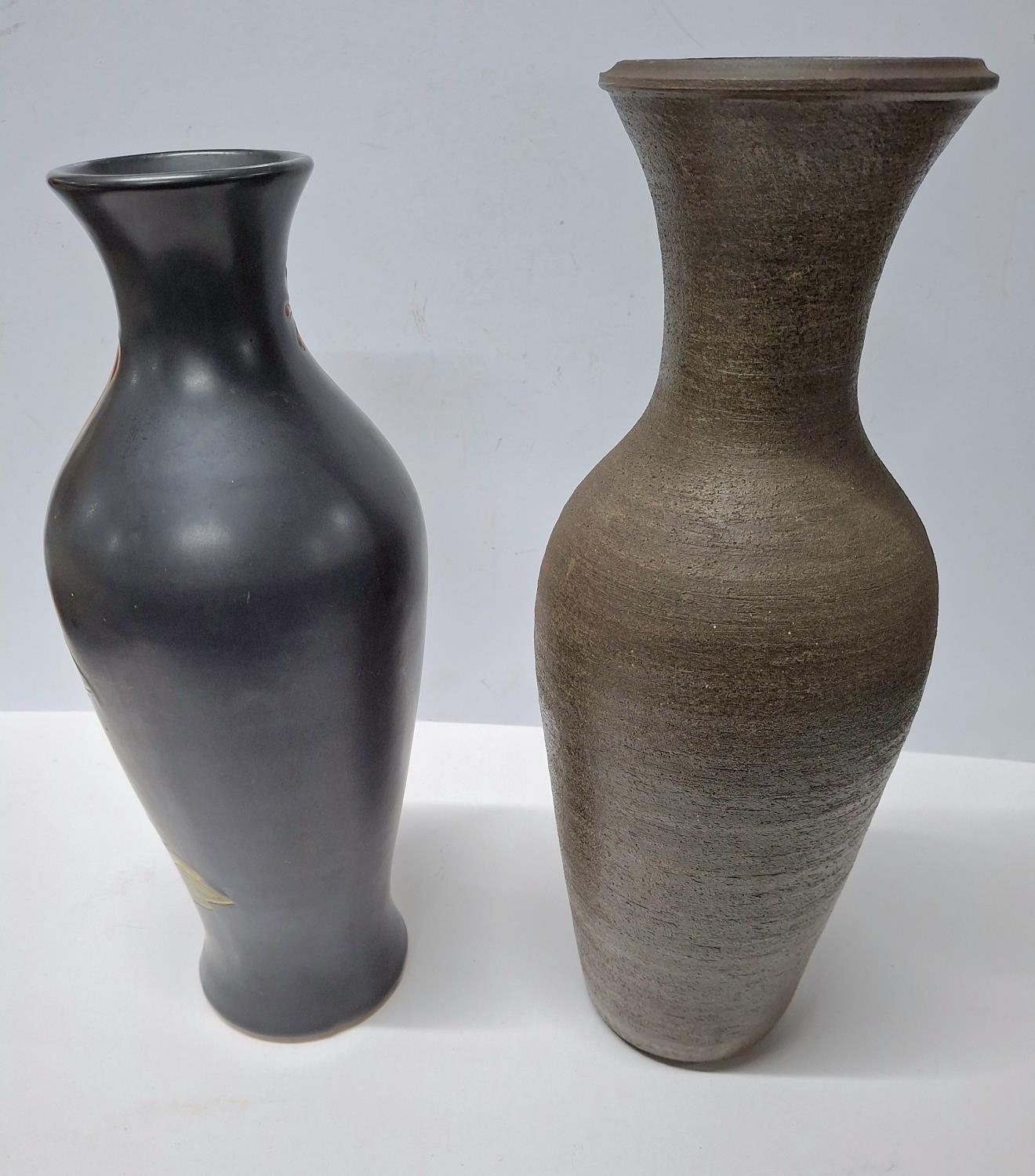 Two British 1960s/70s studio pottery modernist vases, both signed initials (2), Tallest is approx 40cm tall