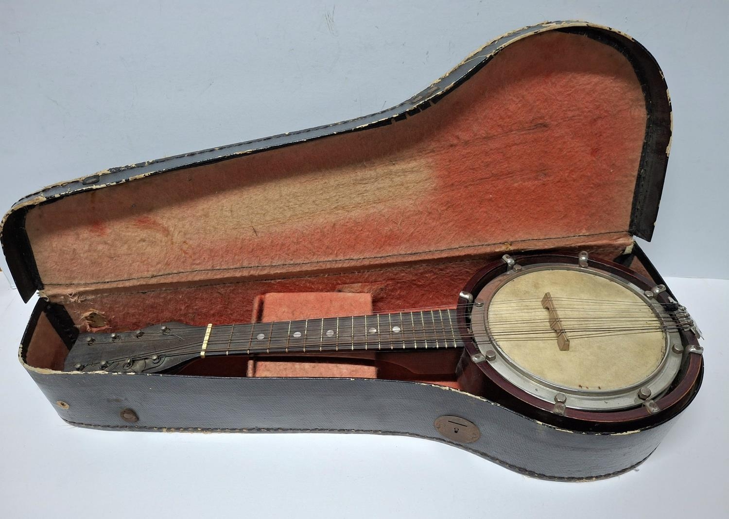 Early/mid 20thC Reliance 8-string banjolele in original carry case
