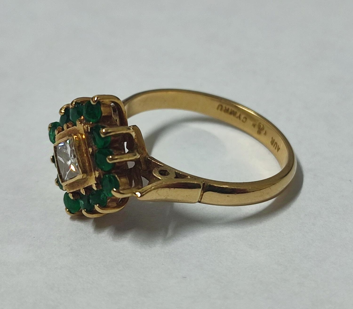 A stunning bespoke 18ct. Yellow Welsh Gold, Diamond and Emerald engagement ring hand-crafted by Welsh Master Jeweller/craftsman Mr. Kelvin Jenkins, approx. 0.75ct. Diamond, 4.2 grams gross, size – M