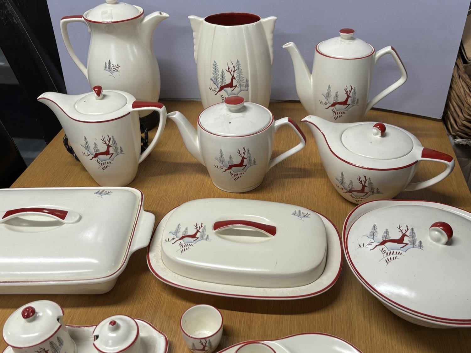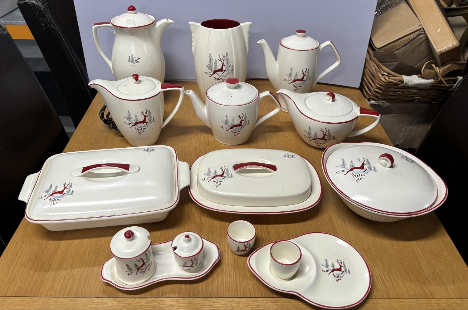 Collection of Stockholm by Crown Devon Fieldings leaping Stag decorative jugs, tea and coffee pots, lidded tureens etc (Qty)