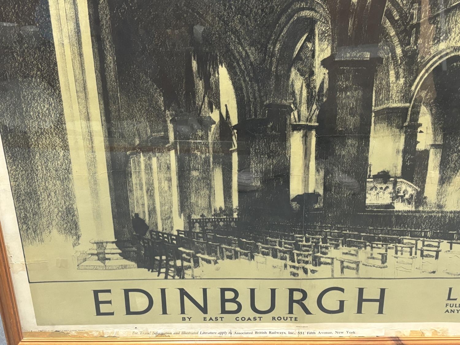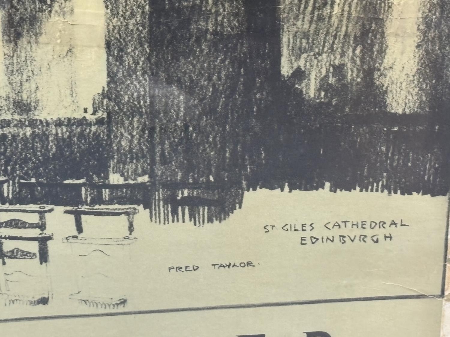 Fred TAYLOR (1875-1963) large black & white poster depicting the interior of Edinburgh Cathedral for London North Eastern Railway, in a later Pine frame,