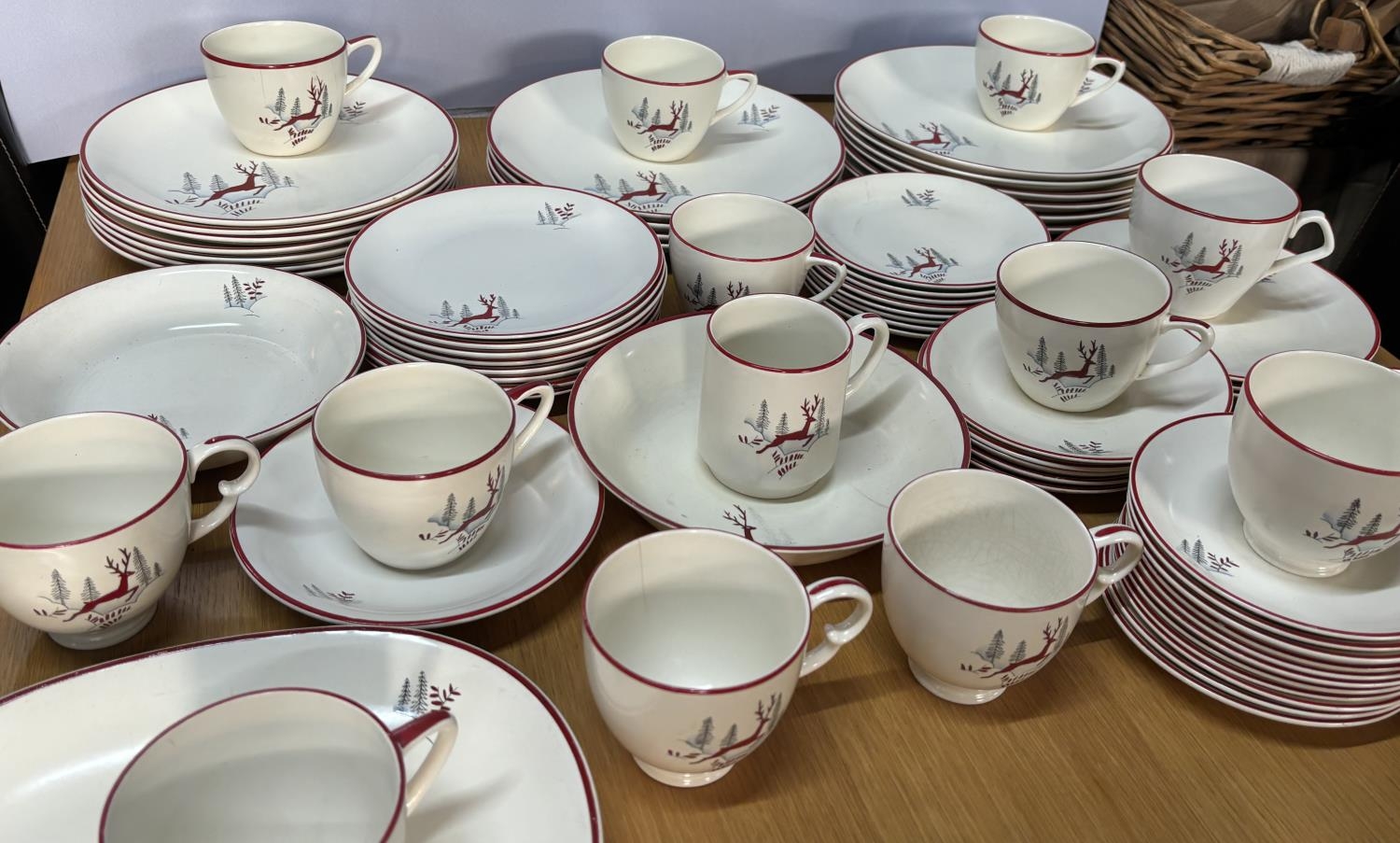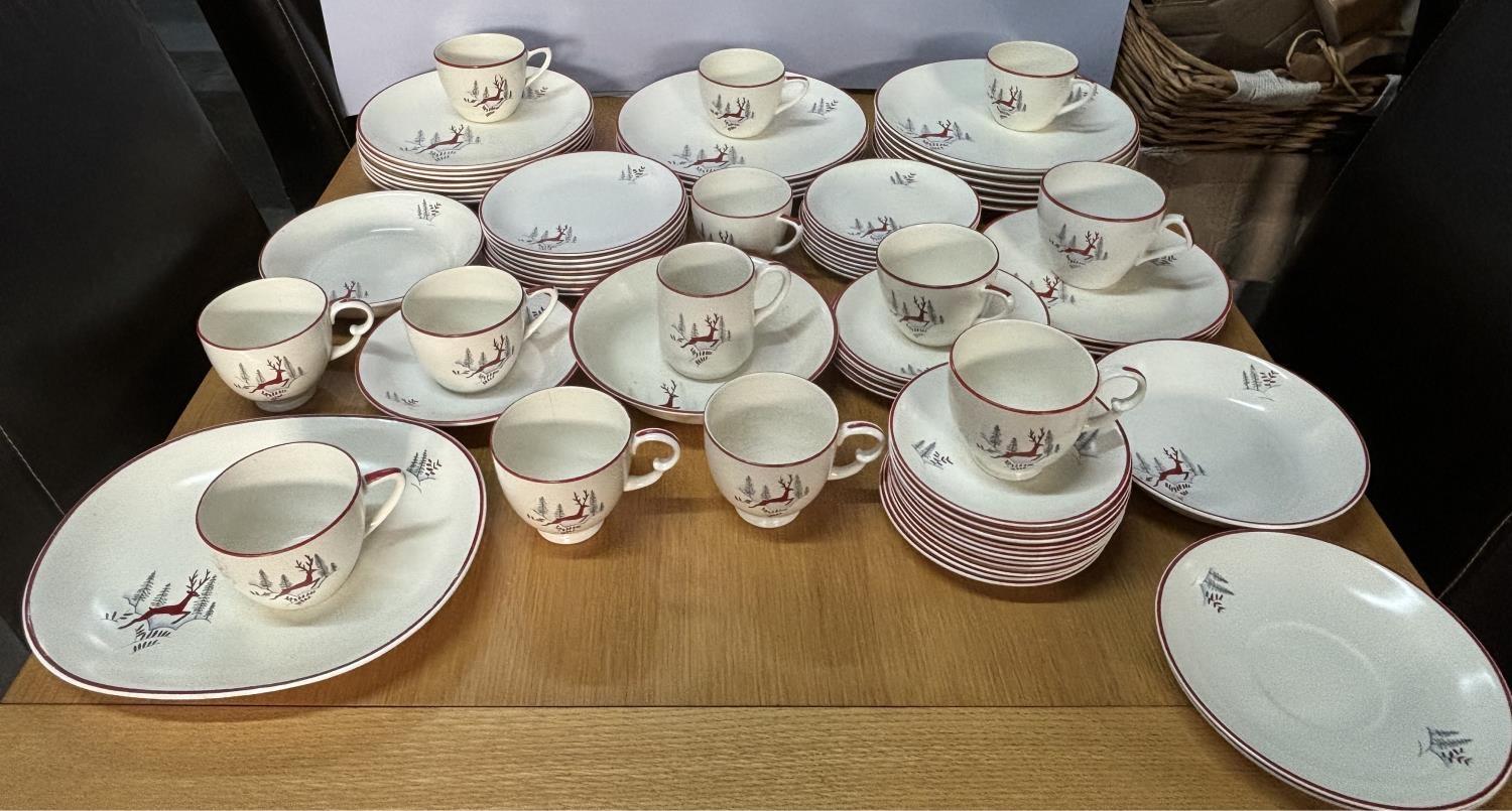 Large quantity of Stockholm by Crown Devon Fieldings leaping Stag dinner plates, side plates, tea cups and saucers etc (Qty)