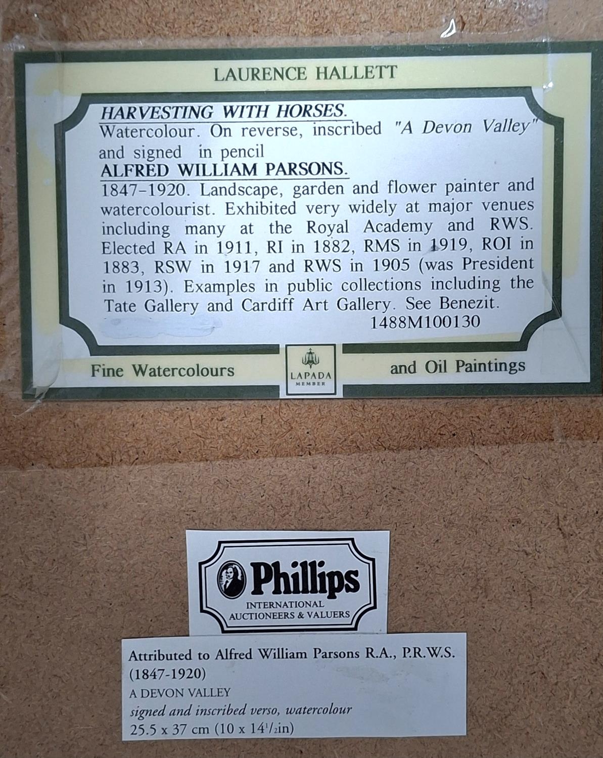 Alfred William PARSONS (1847-1920) watercolour “Harvesting scene” in wash mount and gilt wood frame, The watercolour measures 26 x 37 cm