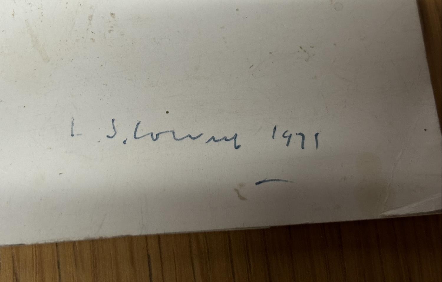 Provenanced – Lawrence Stephen Lowry 1971 signature on a Lowry exhibition catalogue of the artists works at Haworth Art Gallery, Accrington, Lancashire.