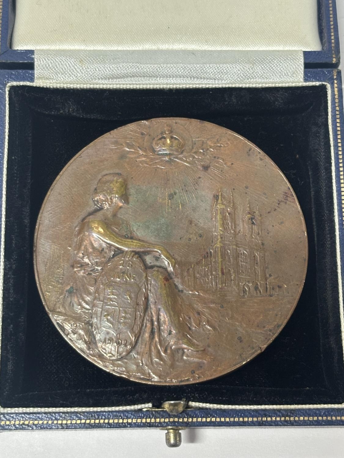 1902 Bronze Coronation medallion Edward VII + Alexander by Elkington