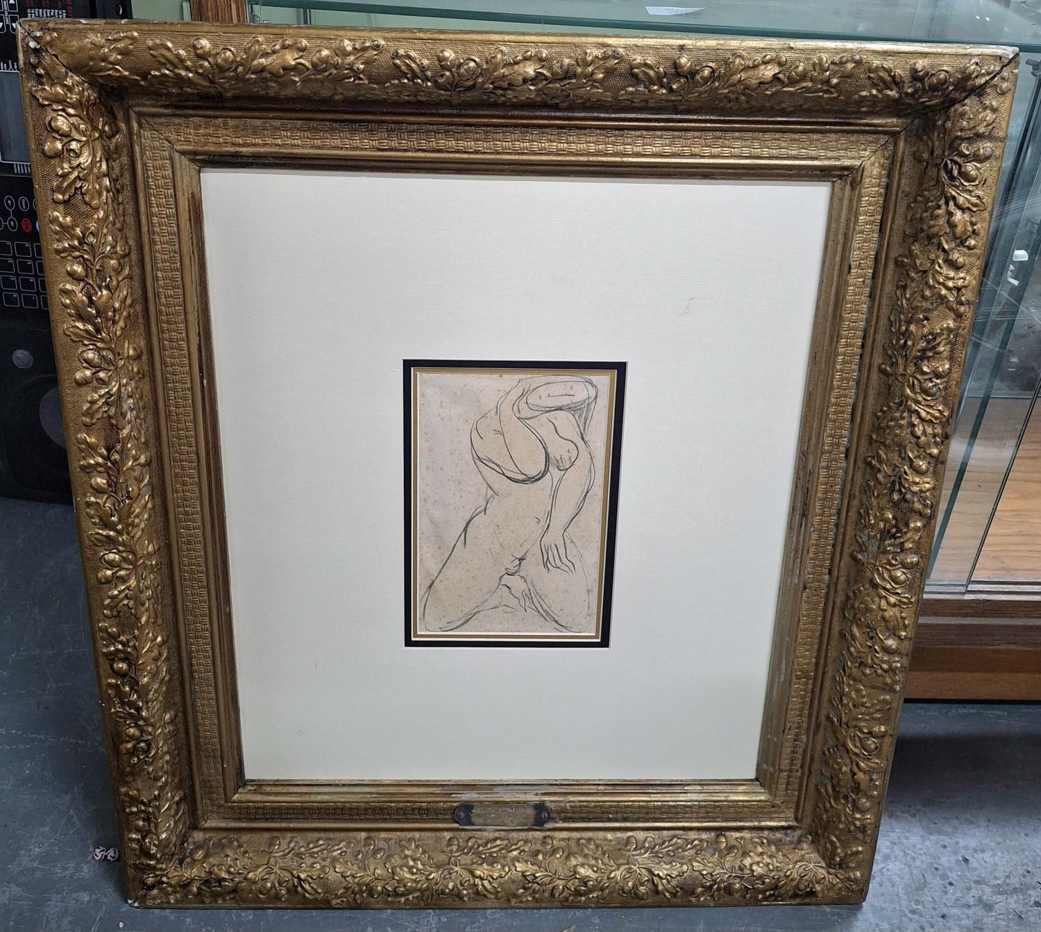 Attributed to Amedeo MODIGLIANI (1884-1920), unsigned pencil sketch of a nude, ascribed to plaque on fine quality, period gilt frame, The drawing measures 22 x 14cm