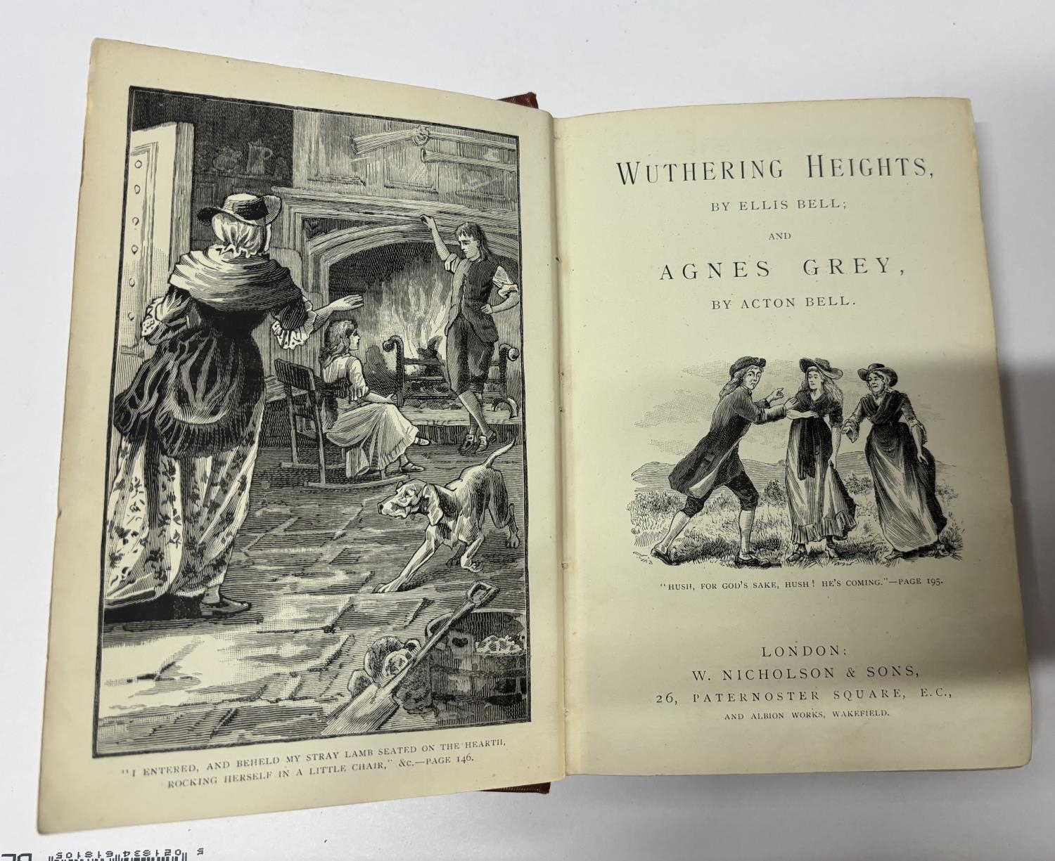 Wuthering Heights and Agnes Grey, RARE antique edition under the pseudonyms Ellis Bell and Acton Bell published by W Nicholson & Sons, London in tooled red leather outer cover.