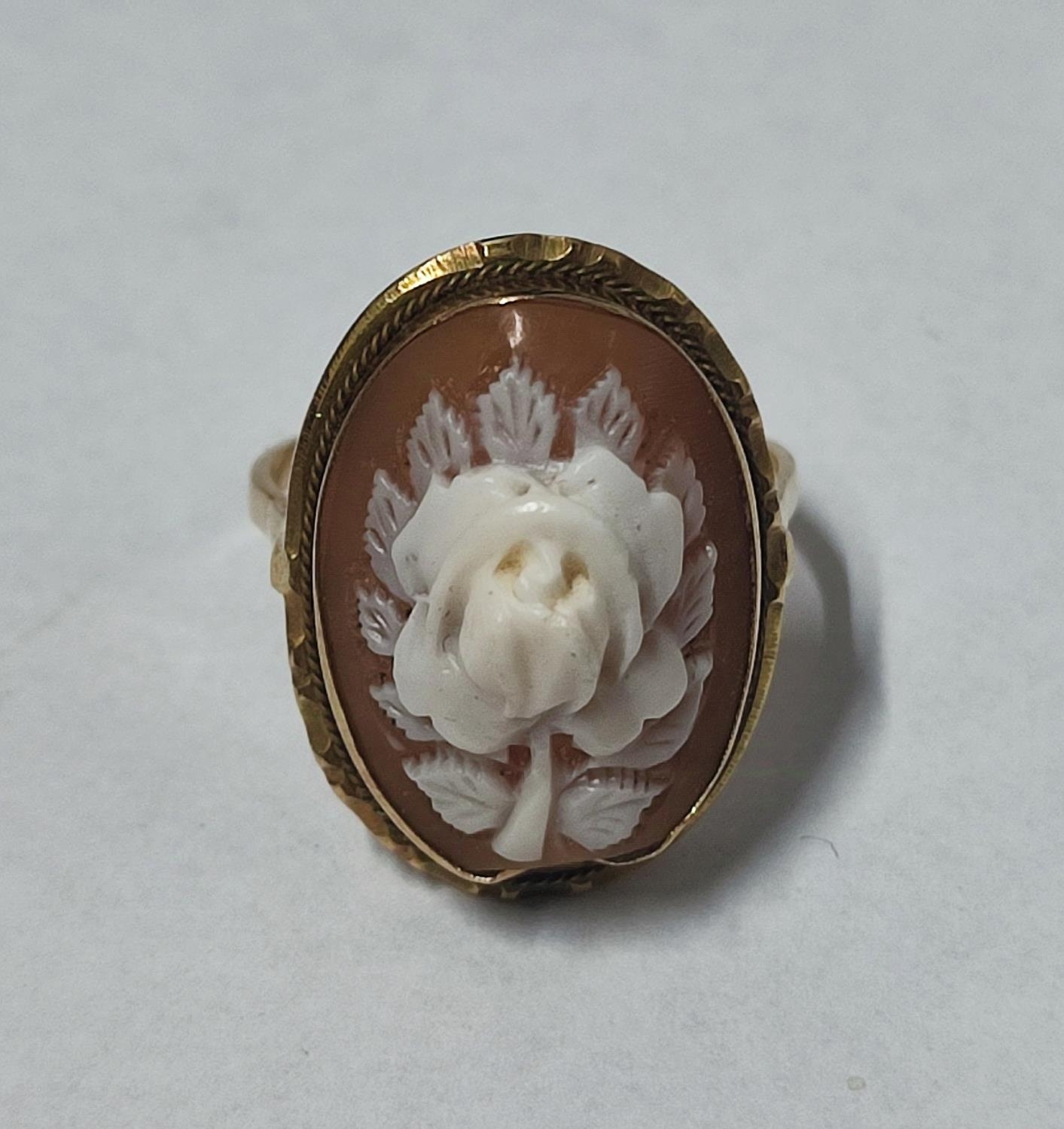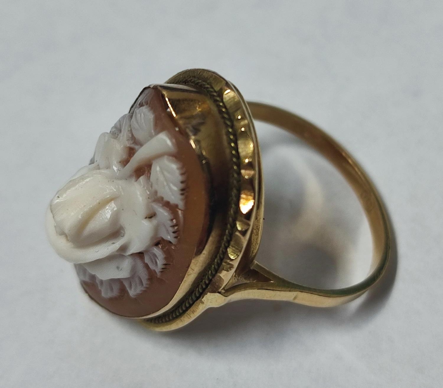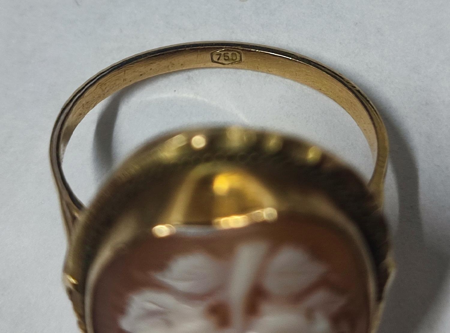 Floral cameo ring, stamped 750, 5.4 grams gross, size – Q