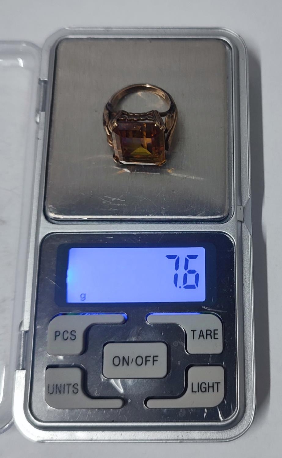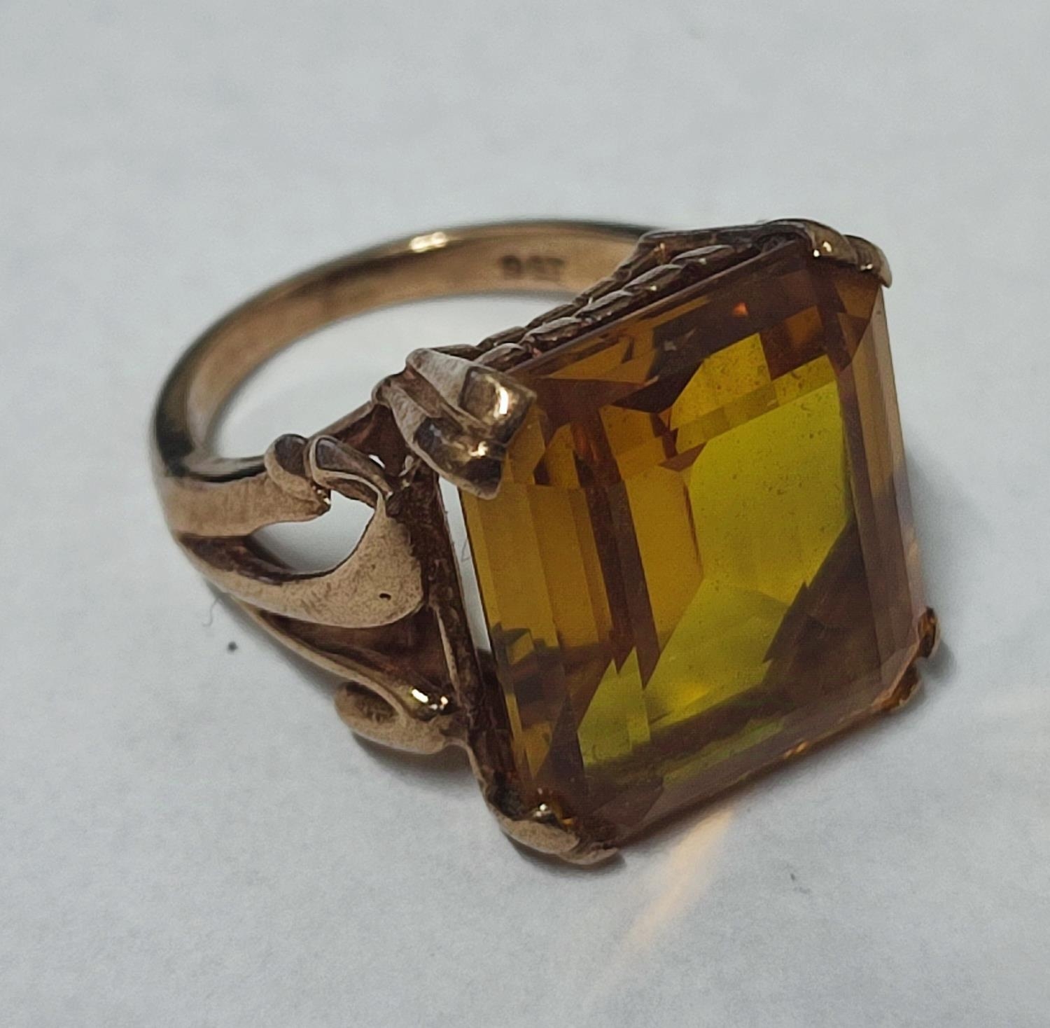 A 9ct. Yellow Gold & fine quality Citrine ring, 7.6 grams gross, size J