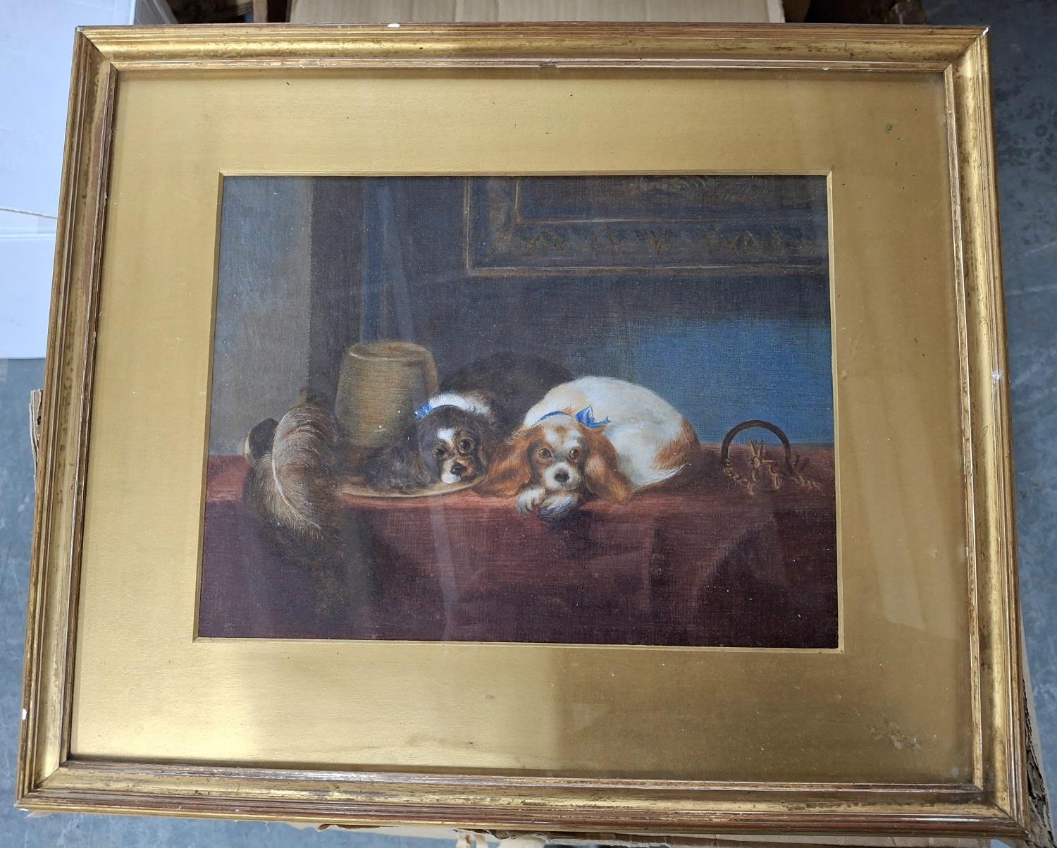 Unsigned late Victorian watercolour depicting two Spaniels after Queen Victoria’s original watercolour, framed, The w/c measures 26 x 20cm