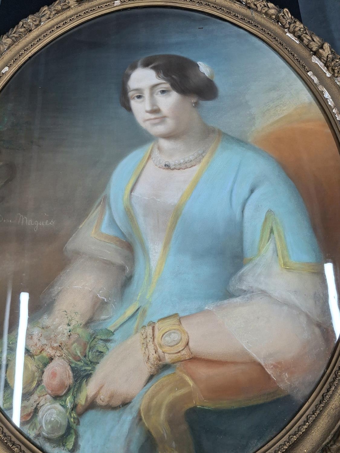 Isidore Jean Baptiste MAGUES (1809-1869) large oval pastel portrait of a young lady, believed to be the Arch Duchess of Austria in its original large gilt plaster oval frame,