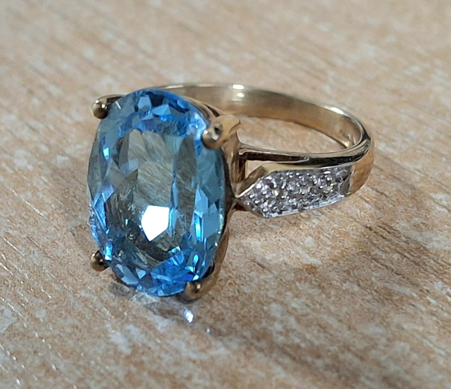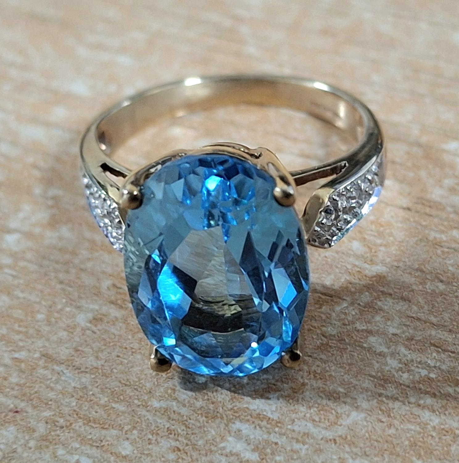 Hallmarked 9ct yellow gold ring with a large round cut Topaz, 4.7 grams gross Size J/K