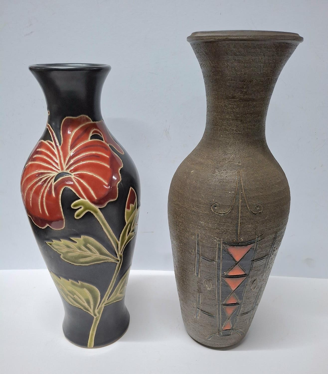 Two British 1960s/70s studio pottery modernist vases, both signed initials (2), Tallest is approx 40cm tall