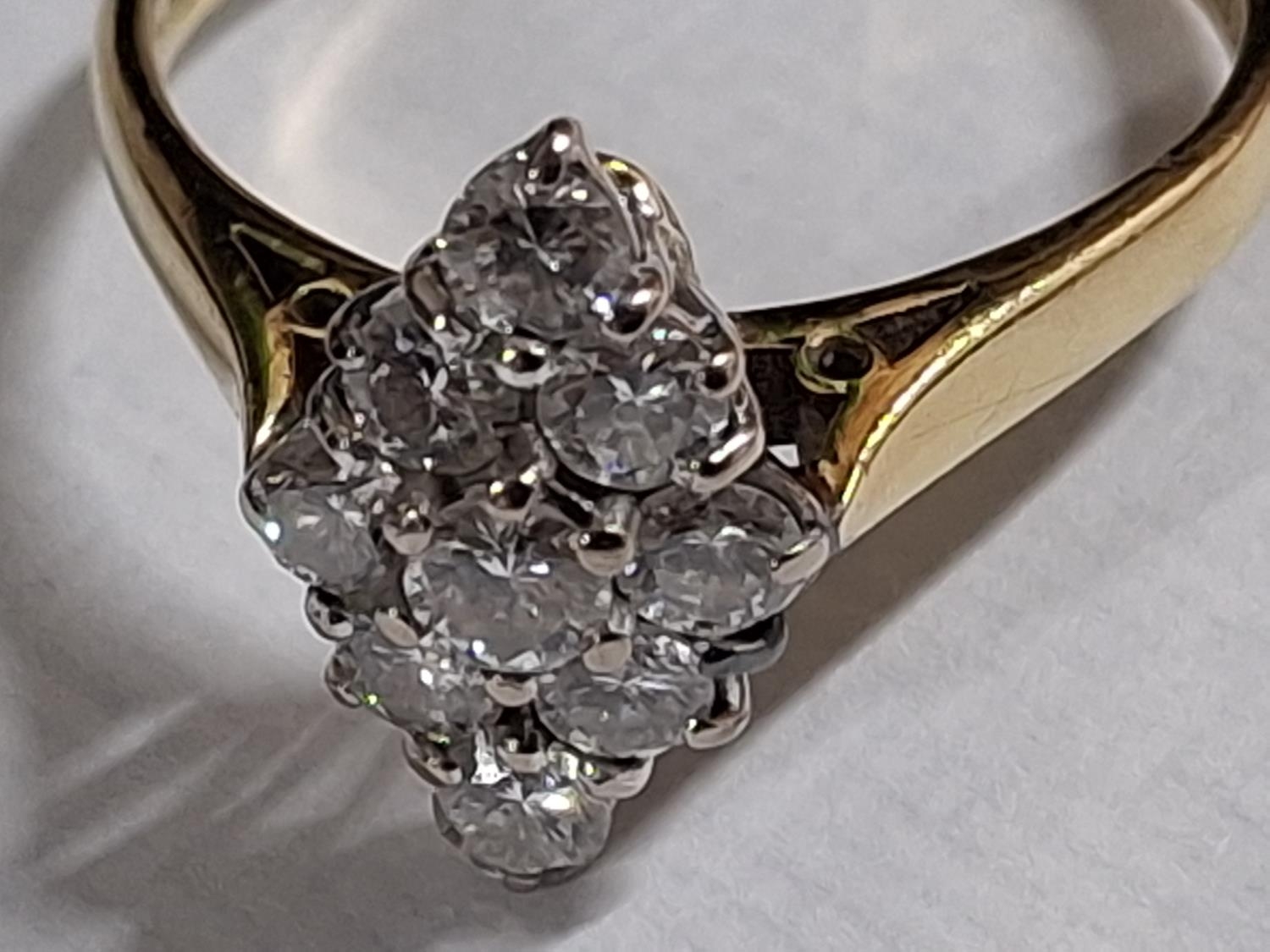 fully hallmarked 18ct yellow gold boats style ring inset with brilliant cut (approx 1ct) diamond ring,