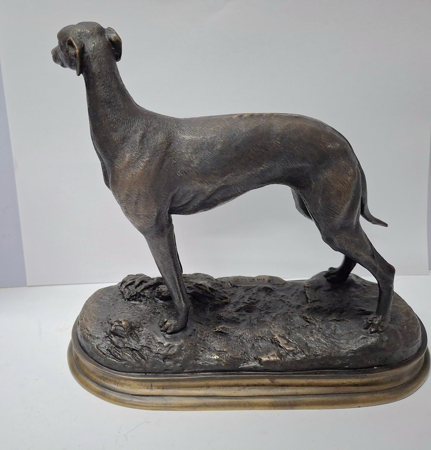 Fine quality, small, modern cast bronze of a Greyhound type dog after Pierre Jules Mene, The bronze measures approx 22cm long X 19cm tall