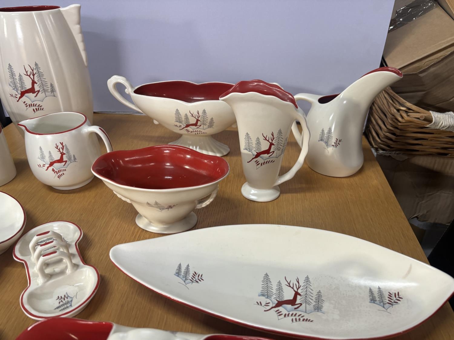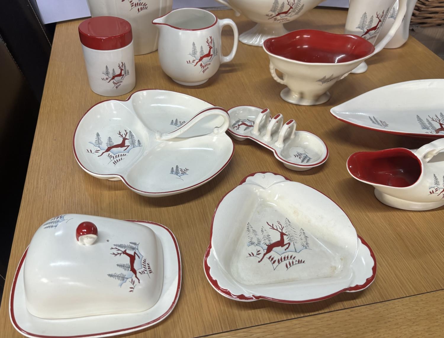 Collection of Stockholm by Crown Devon Fieldings leaping Stag decorative jugs, butter dish, jars, platters etc (Qty)