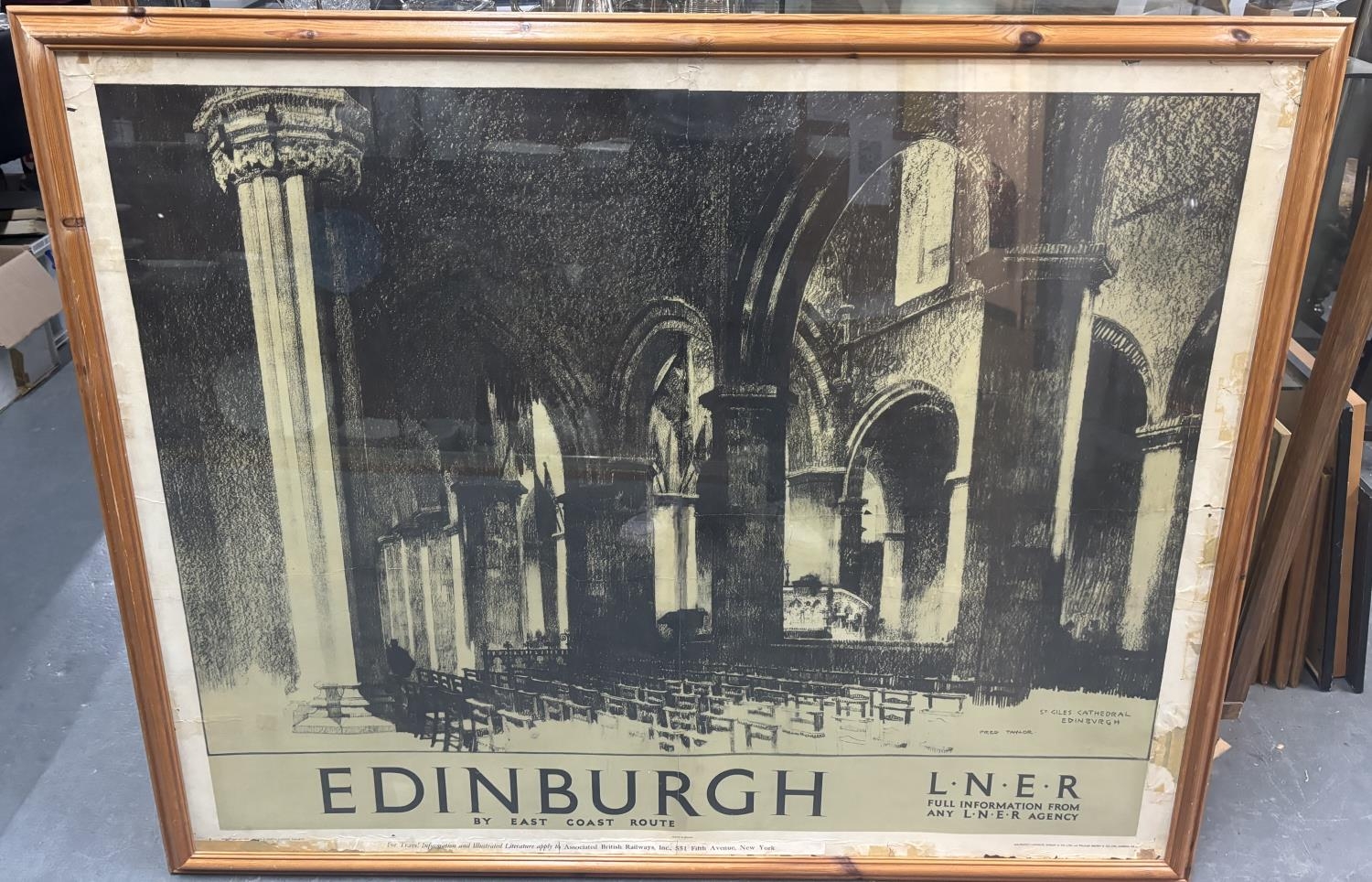 Fred TAYLOR (1875-1963) large black & white poster depicting the interior of Edinburgh Cathedral for London North Eastern Railway, in a later Pine frame, The poster measures 101 x 126cm