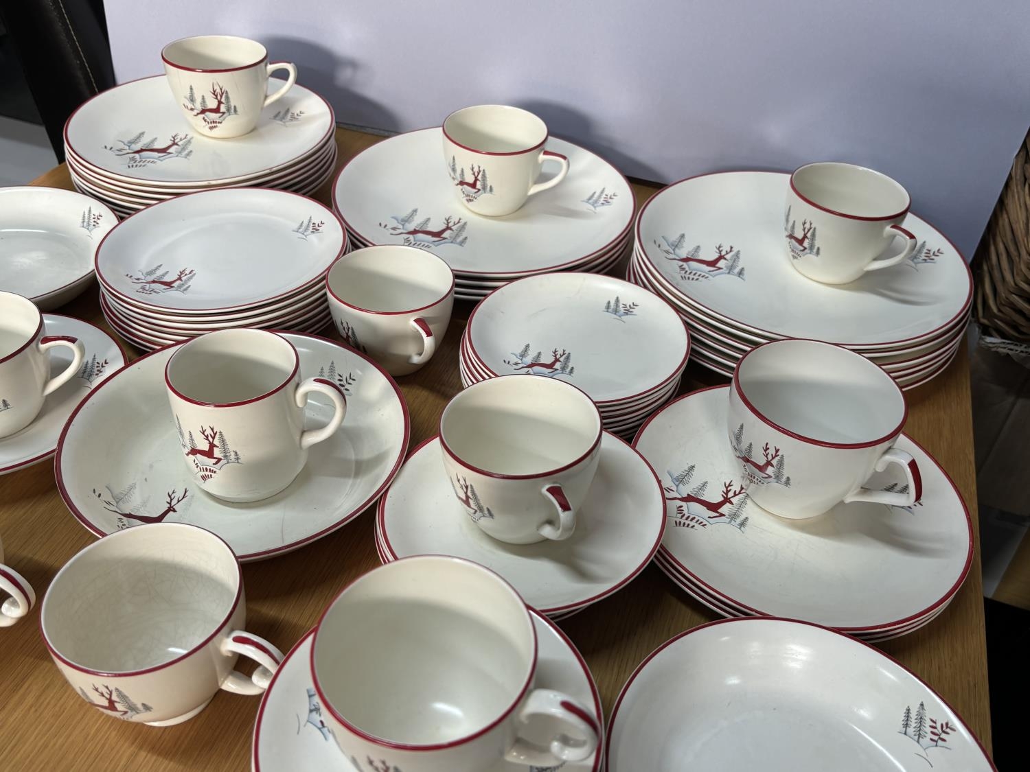 Large quantity of Stockholm by Crown Devon Fieldings leaping Stag dinner plates, side plates, tea cups and saucers etc (Qty)