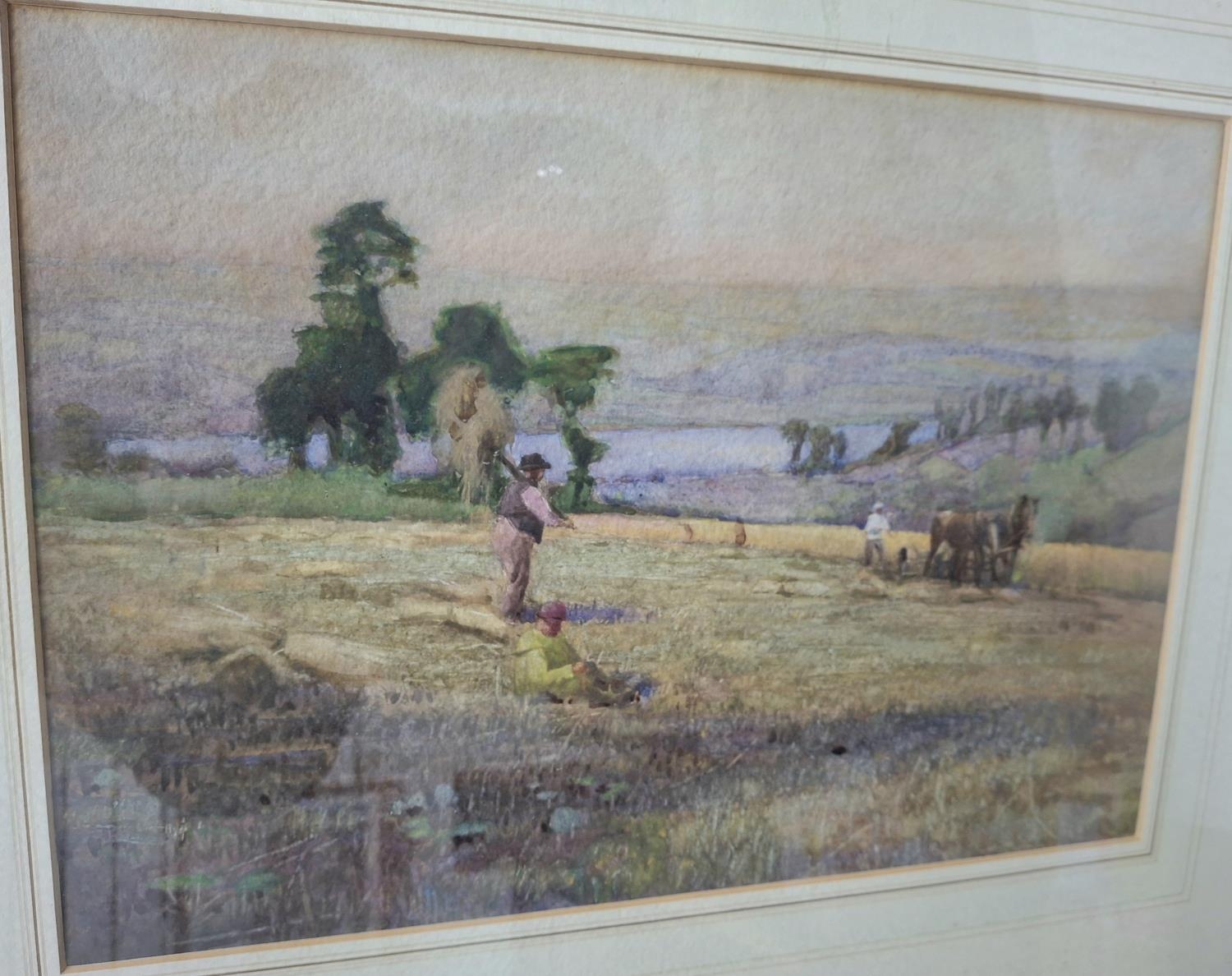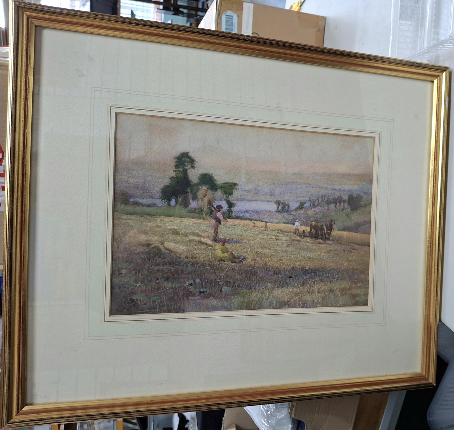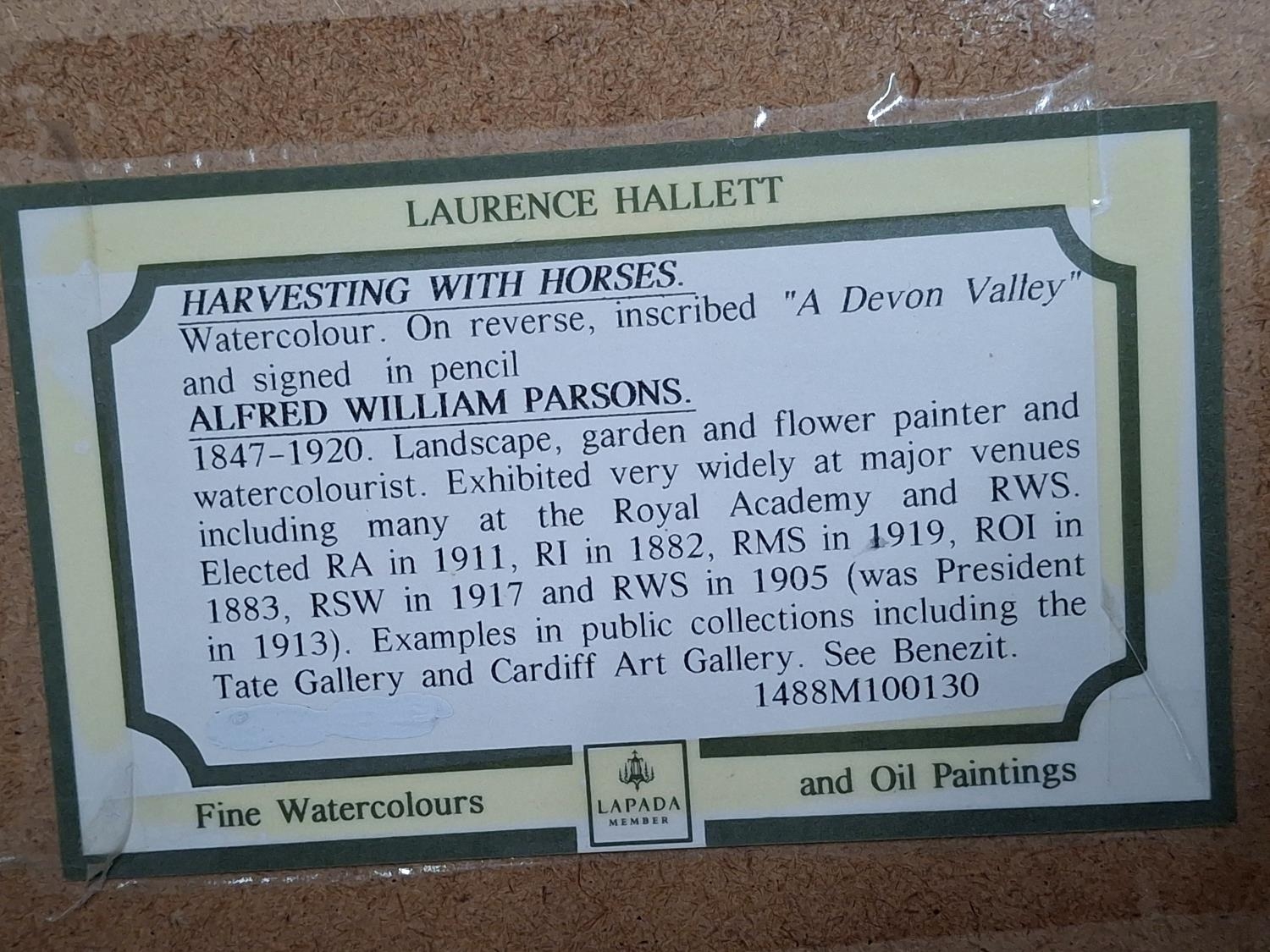 Alfred William PARSONS (1847-1920) watercolour “Harvesting scene” in wash mount and gilt wood frame, The watercolour measures 26 x 37 cm