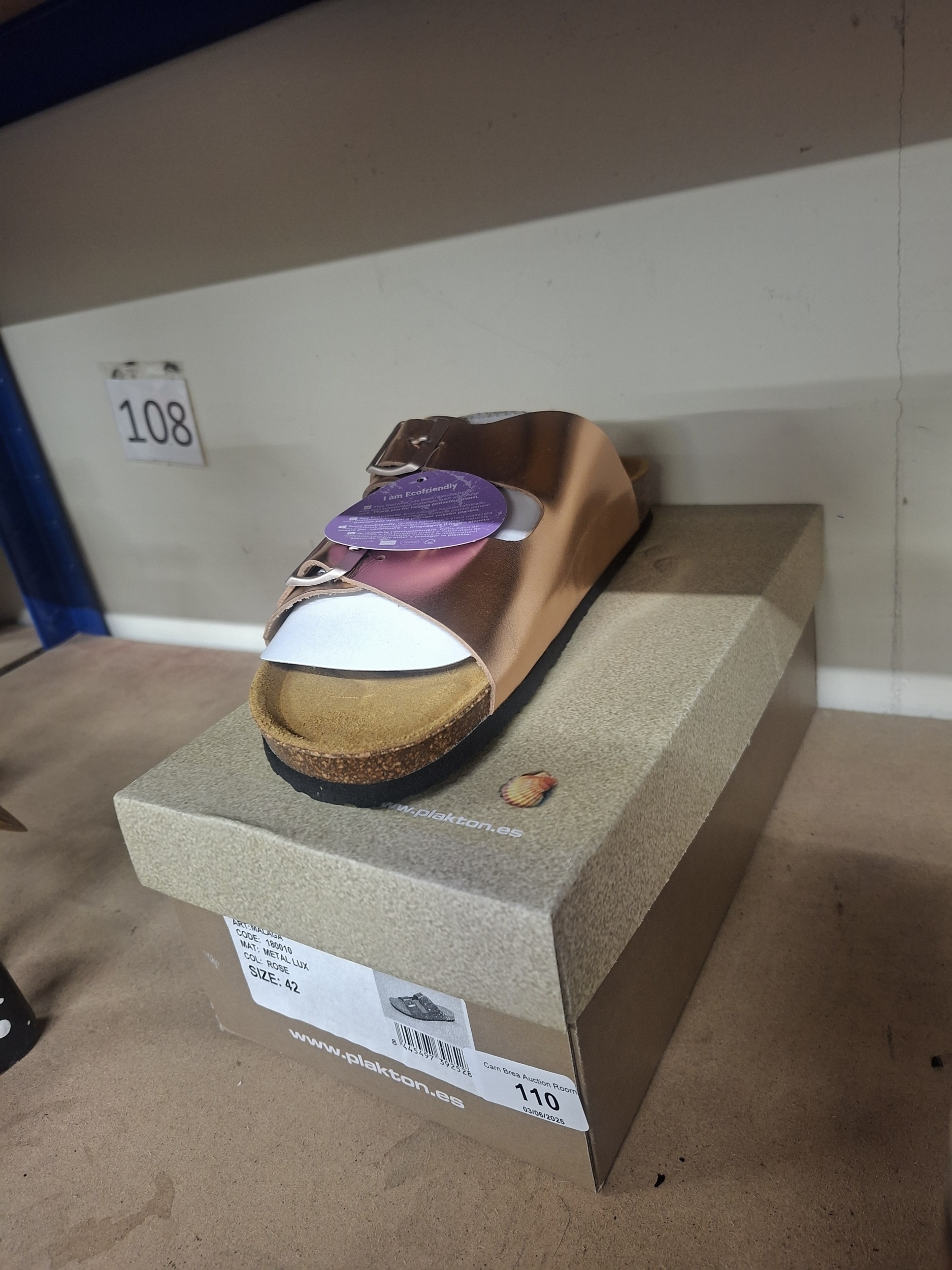 New rose gold women’s sandals with cork footbed, size 42, in original box.