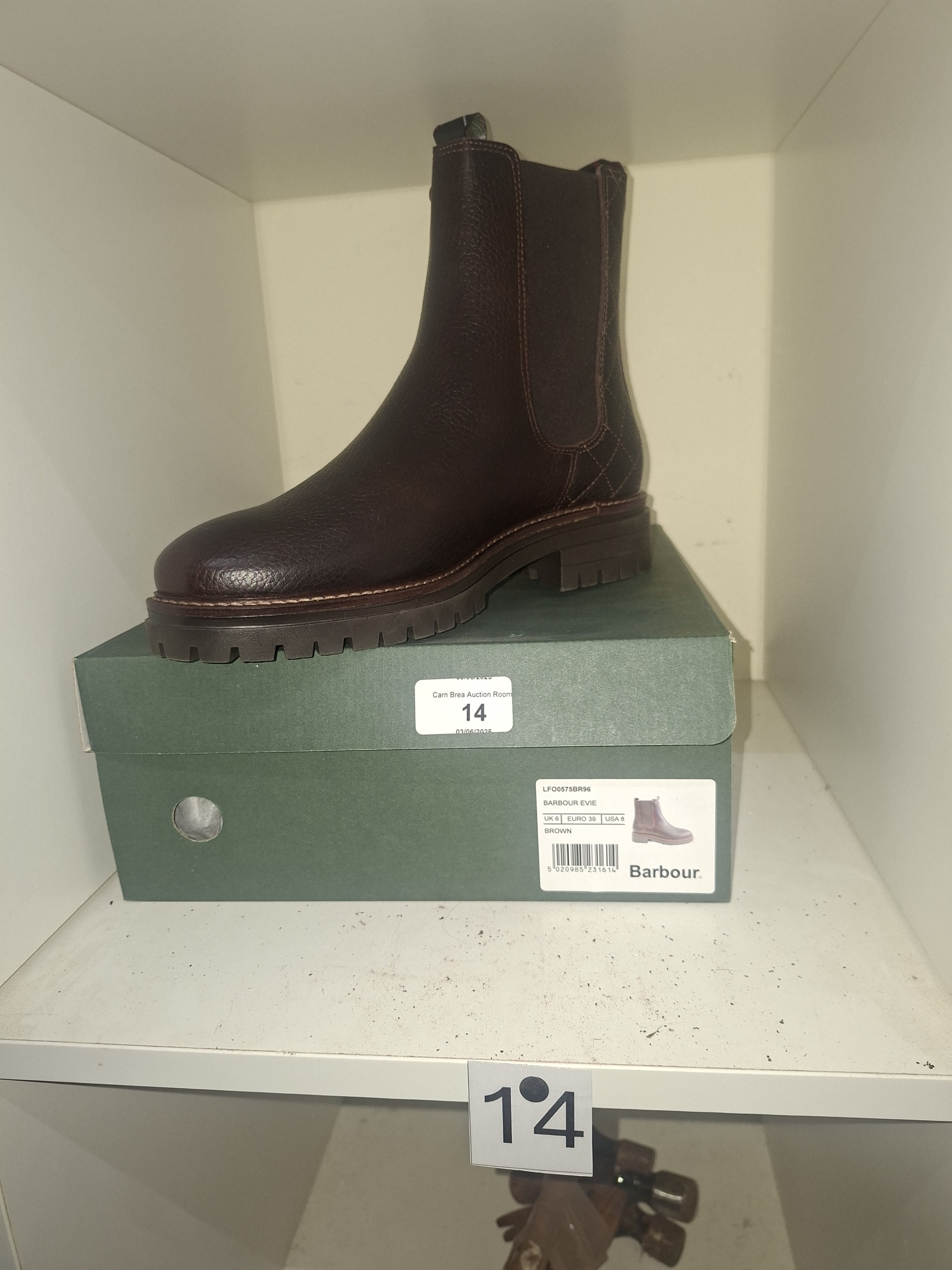 New or very good condition brown leather Barbour Evie ankle boot, size UK 6, in original box.