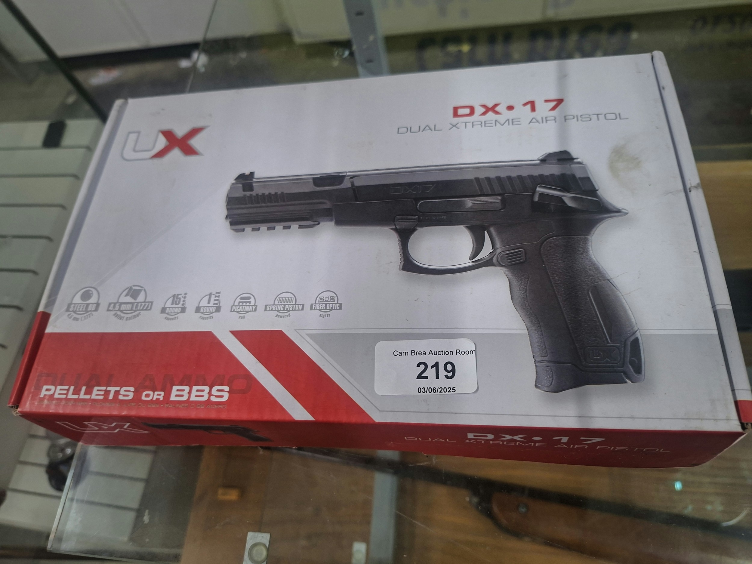A black DX.17 Dual Xtreme air pistol in its original, slightly worn box.