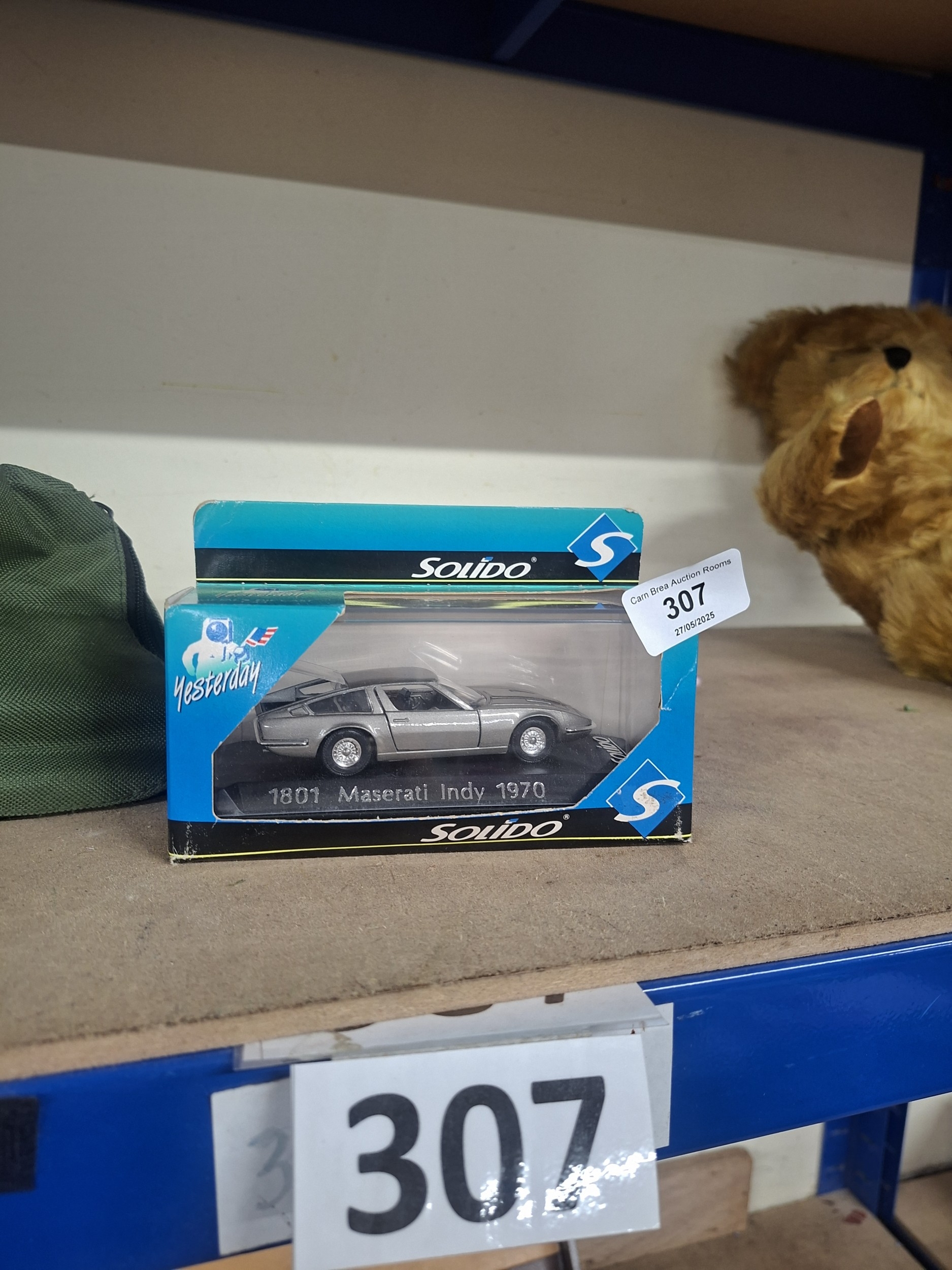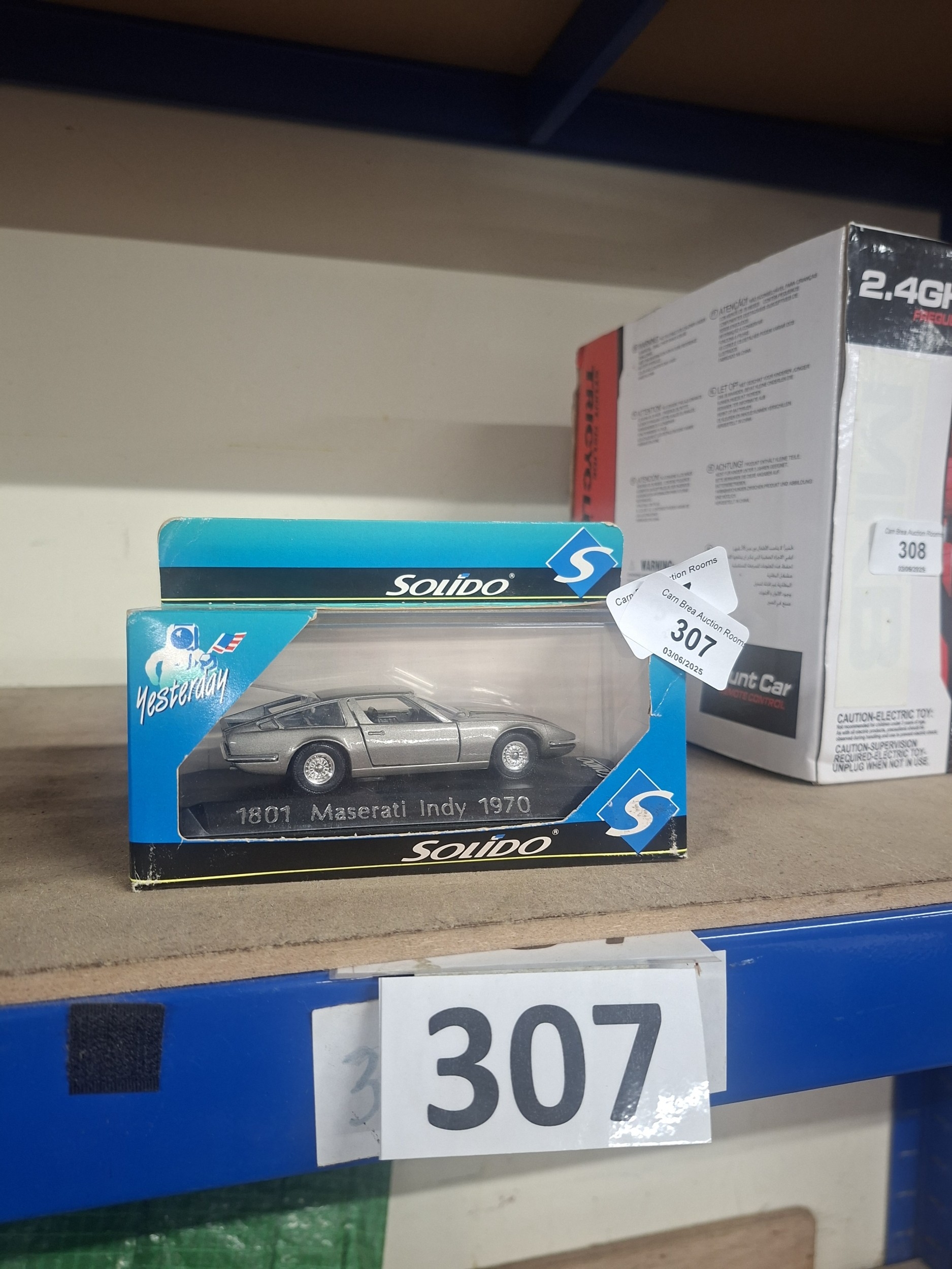 Mint condition Maserati Indy 1970 diecast model car in its original, slightly worn box.