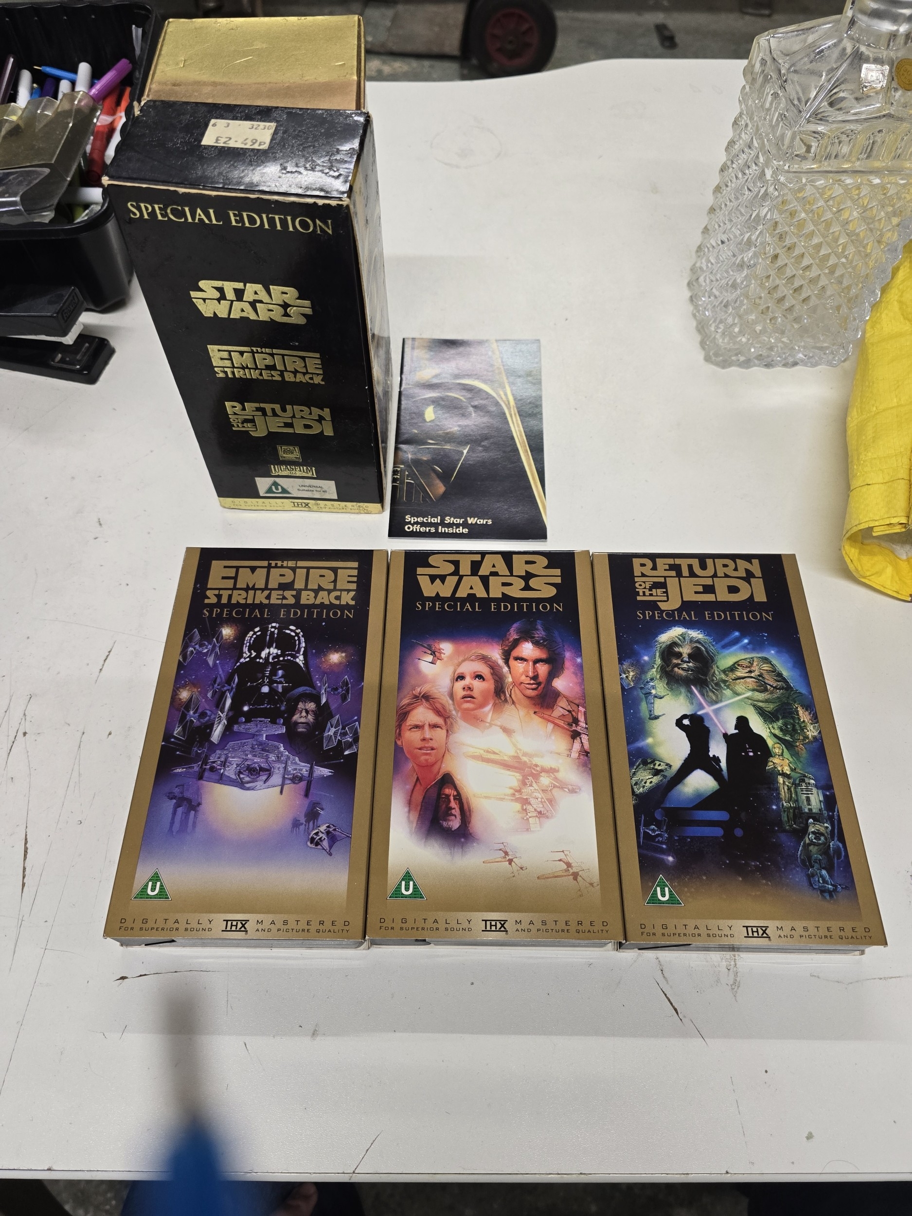 A VHS boxed set of the Star Wars trilogy special editions, showing minor wear.