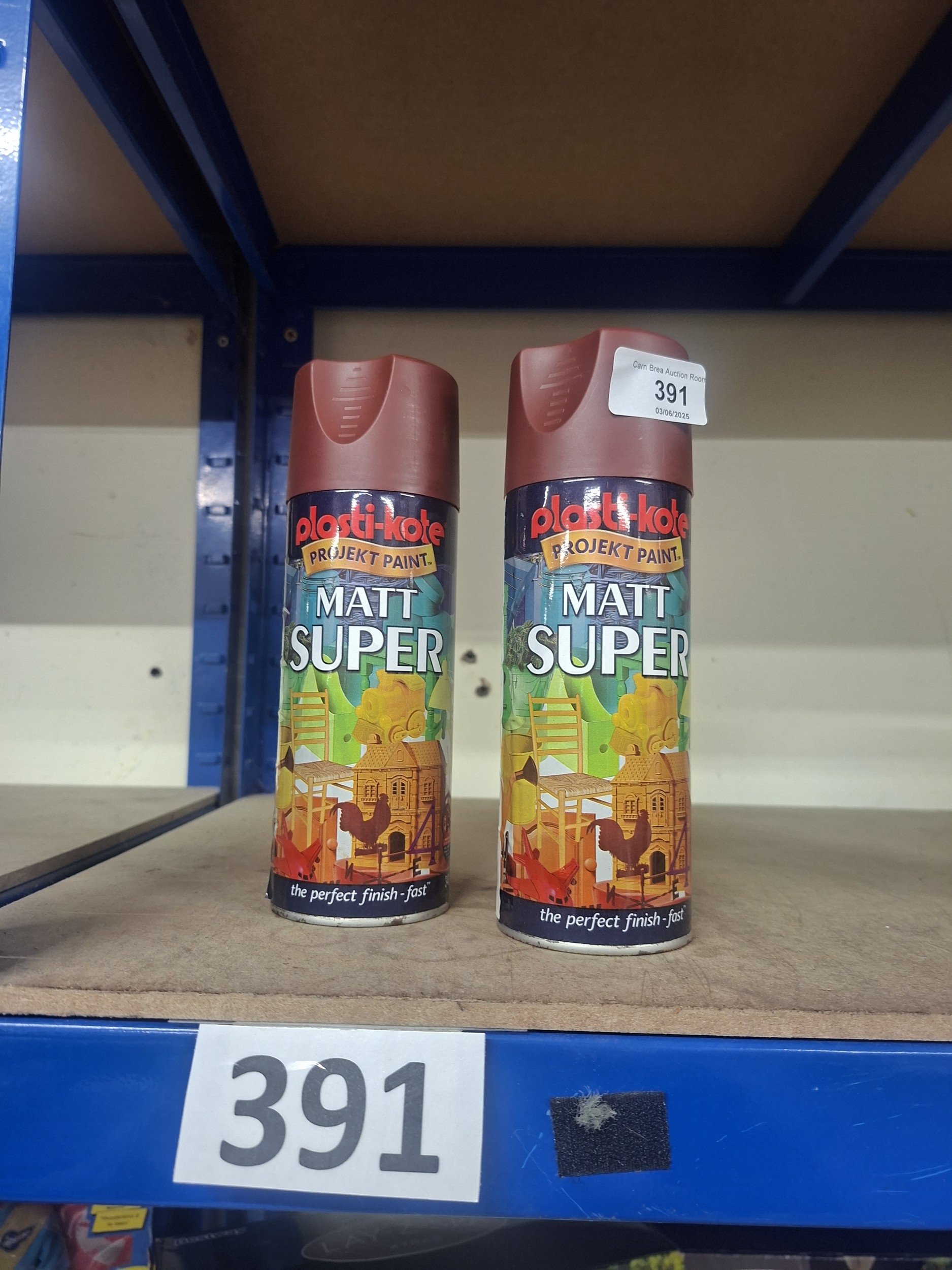 Two full, unopened cans of Plasti-Kote Projekt Paint Matt Super in good condition.