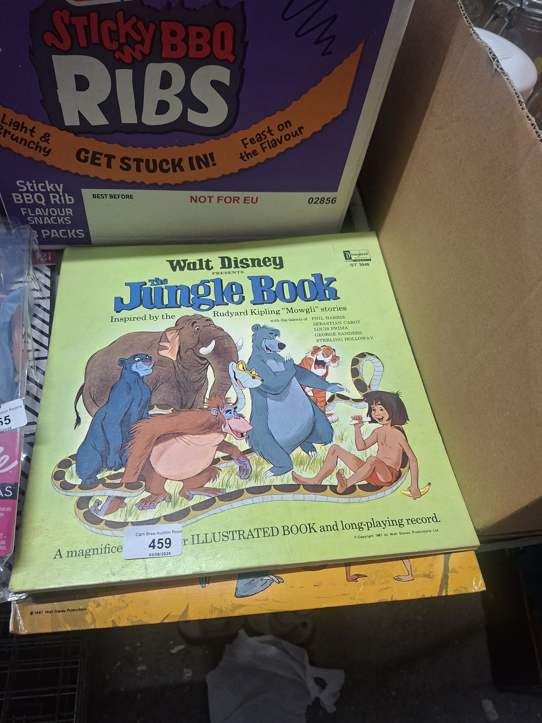 Vintage Walt Disney Jungle Book book and record set showing minor wear.