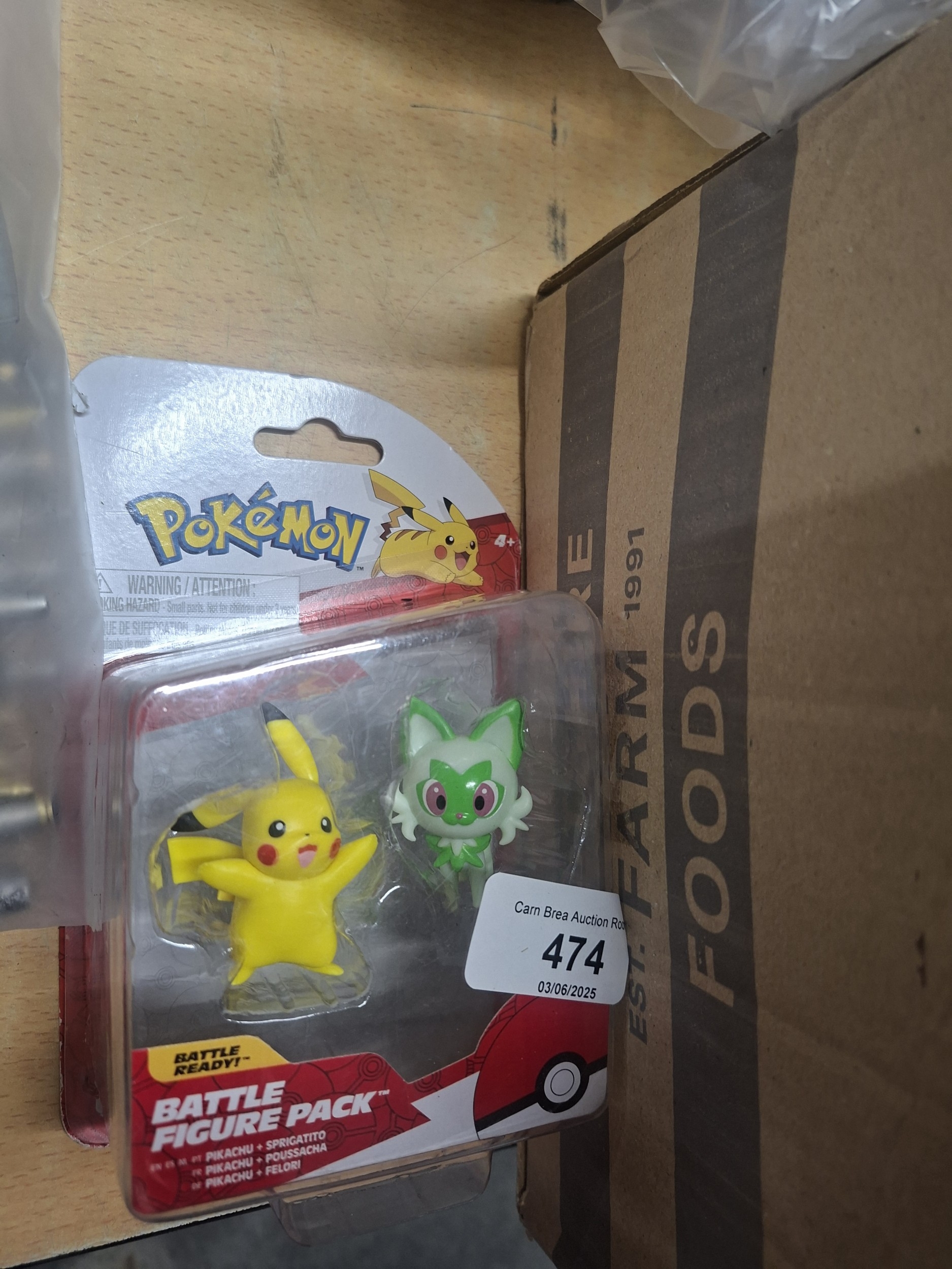 Sealed blister pack with two Pokémon figures (Pikachu and Sprigatito), showing minor scratches.