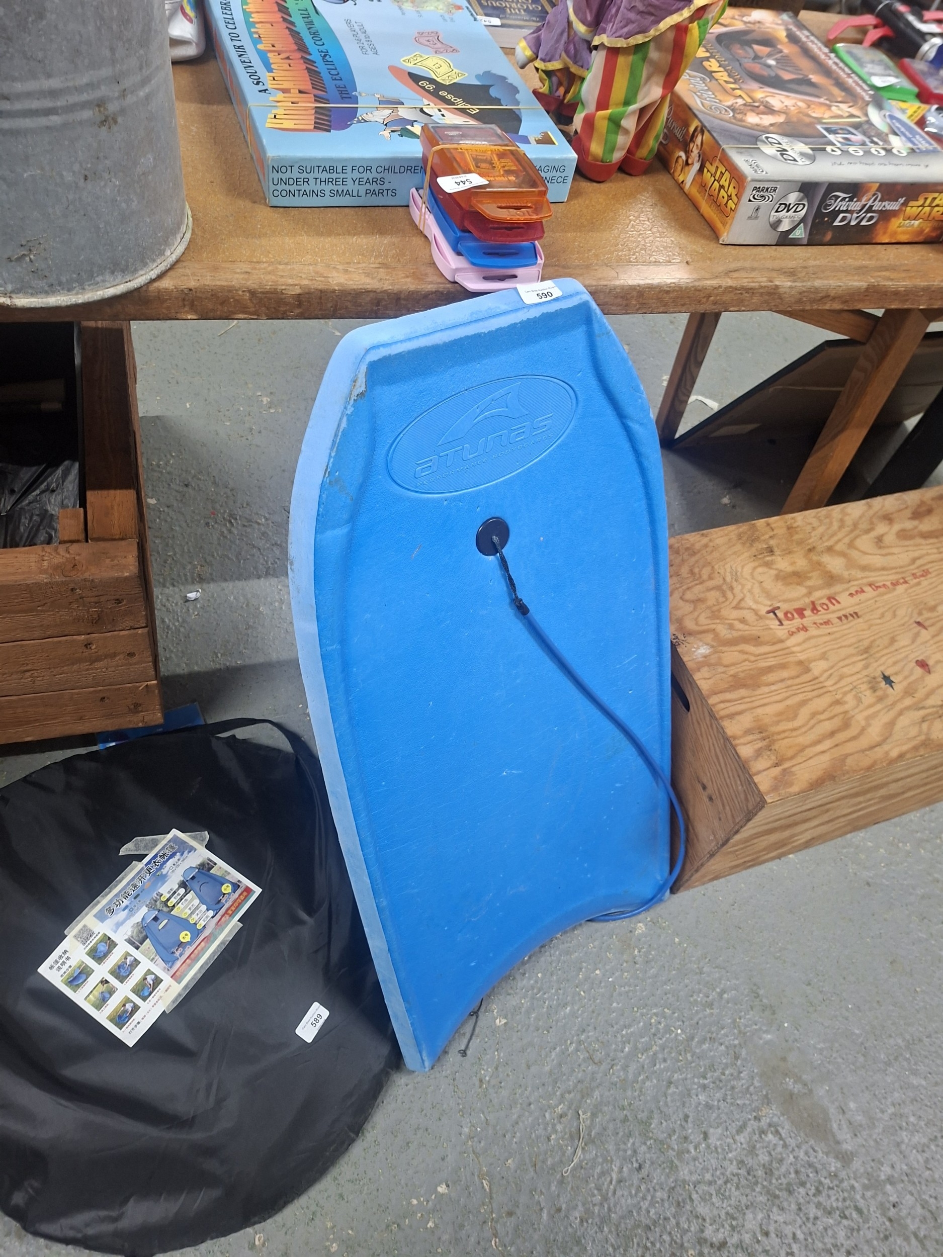 Used blue Stubbs bodyboard with minor surface wear.
