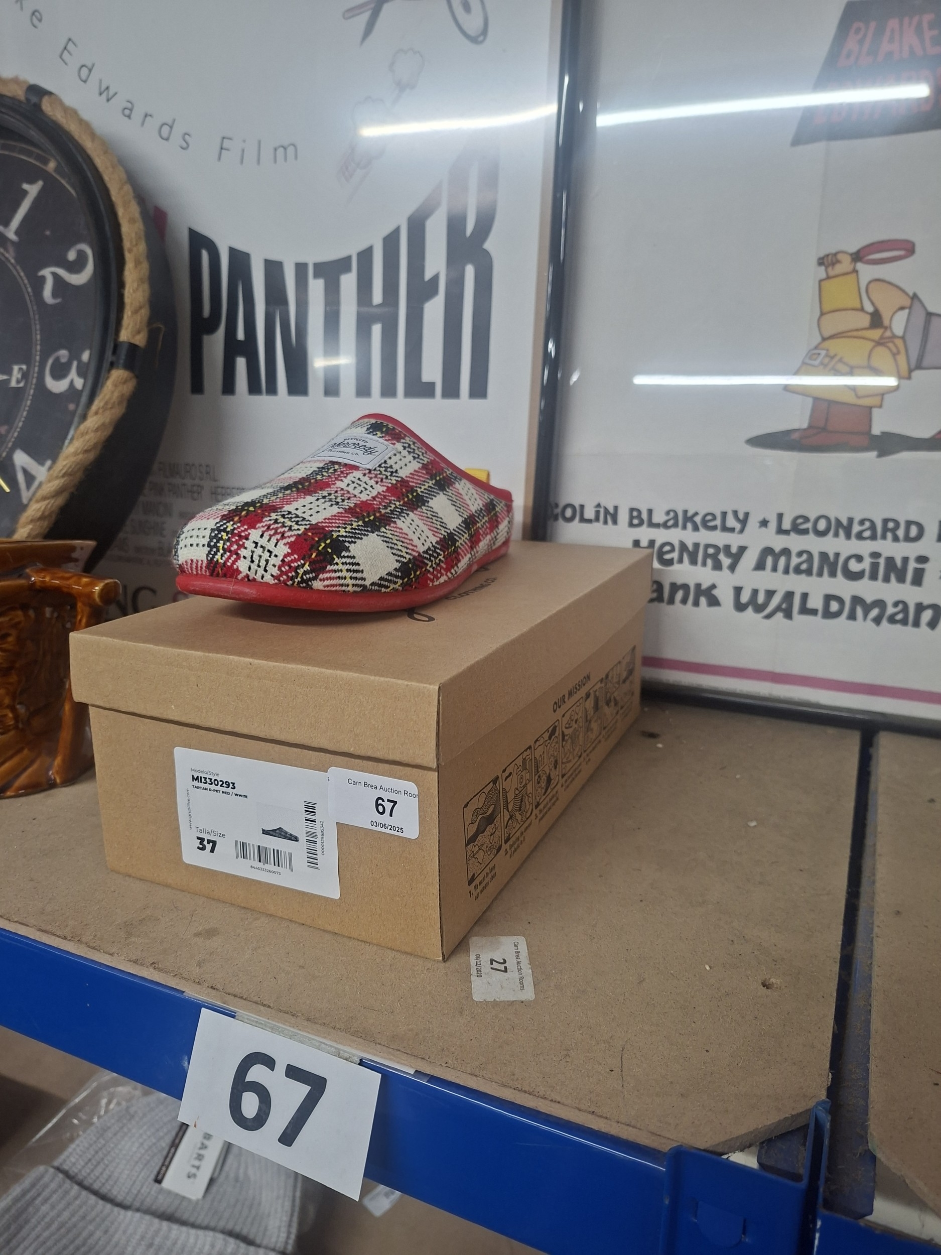 A single red and white plaid slipper by Ricky McReady Clothing Co., size 37, in original box.