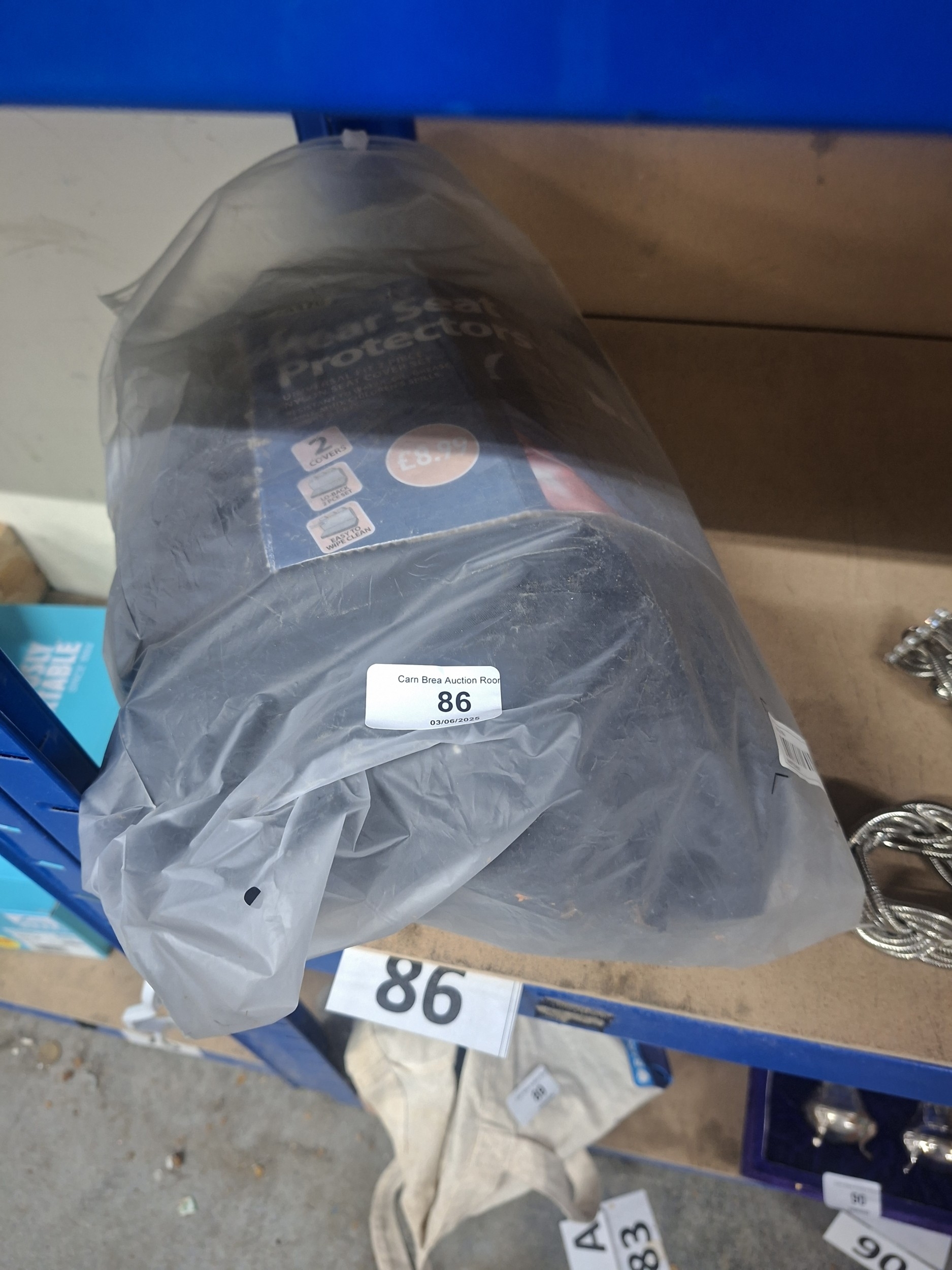 A package of two car seat protectors, showing minor packaging damage.