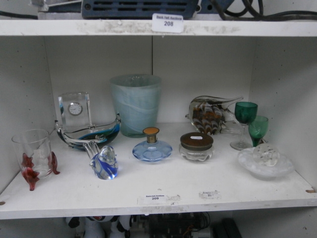 This lot features a collection of assorted decorative glass items including a gondola with a clock, a perfume bottle, and various animal figures.