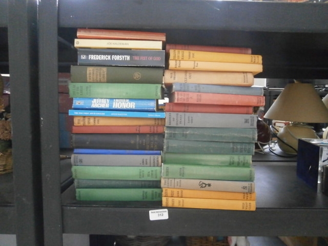 This lot features a collection of hardcover books, including titles by Joe Haldeman, Frederick Forsyth, and Jeffrey Archer.