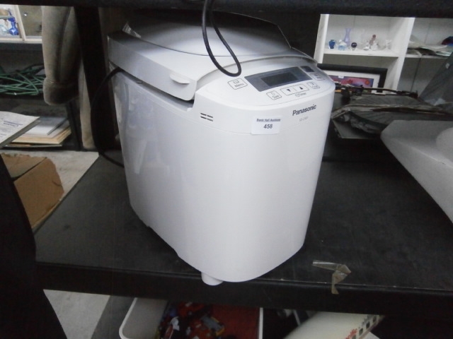 A white Panasonic SD-YD250 upright bread maker with a digital display and control panel.