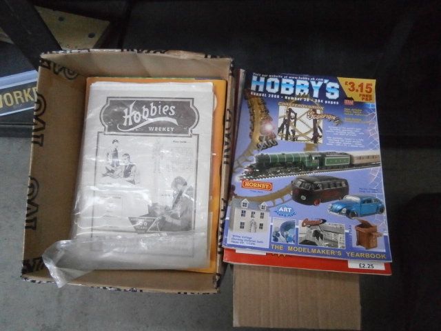 Two magazines, one titled “Hobbies Weekly” and the other “Hobby’s Annual 2000”, are presented with a brown cardboard box.