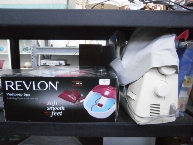 This lot features a Revlon Pediprep Spa foot bath kit, including a 9-piece nail care set, presented in its original black and white packaging.
