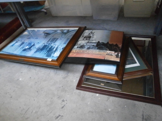 This lot features three framed items, including two prints and a mirror with an inner frame.