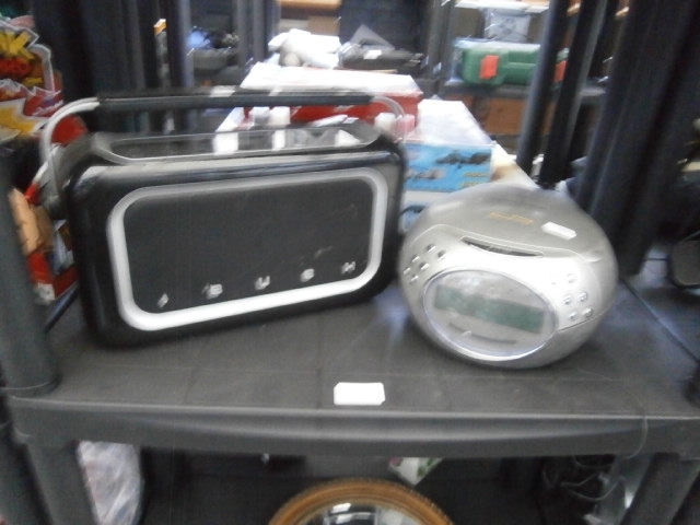 A Bush branded speaker and a spherical CD player are presented together.
